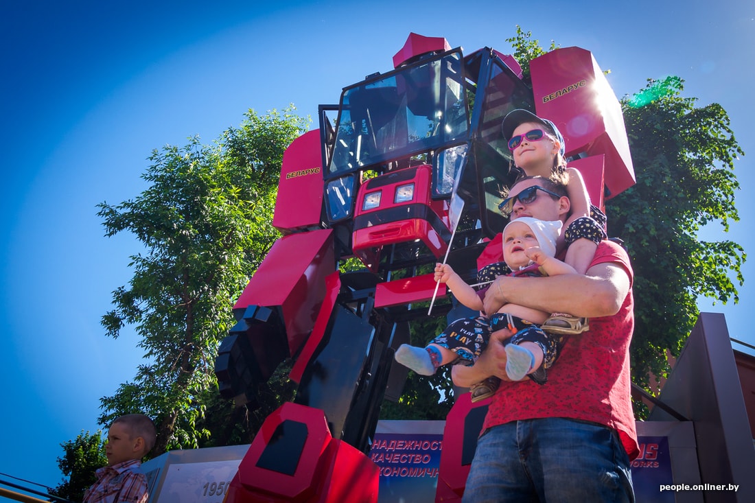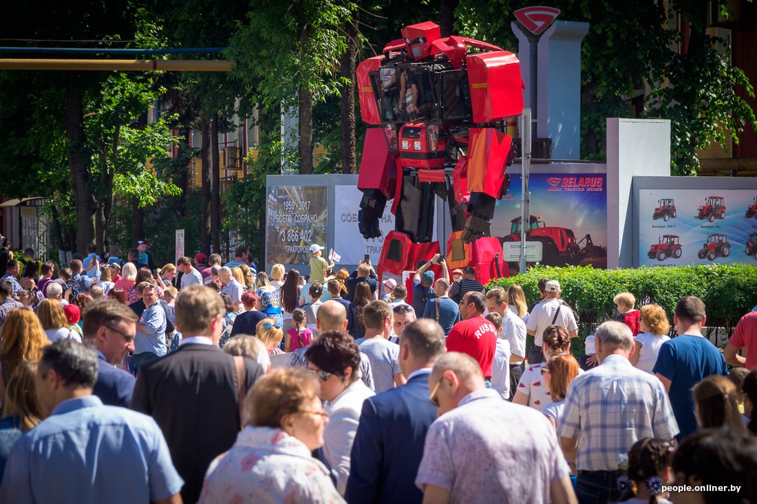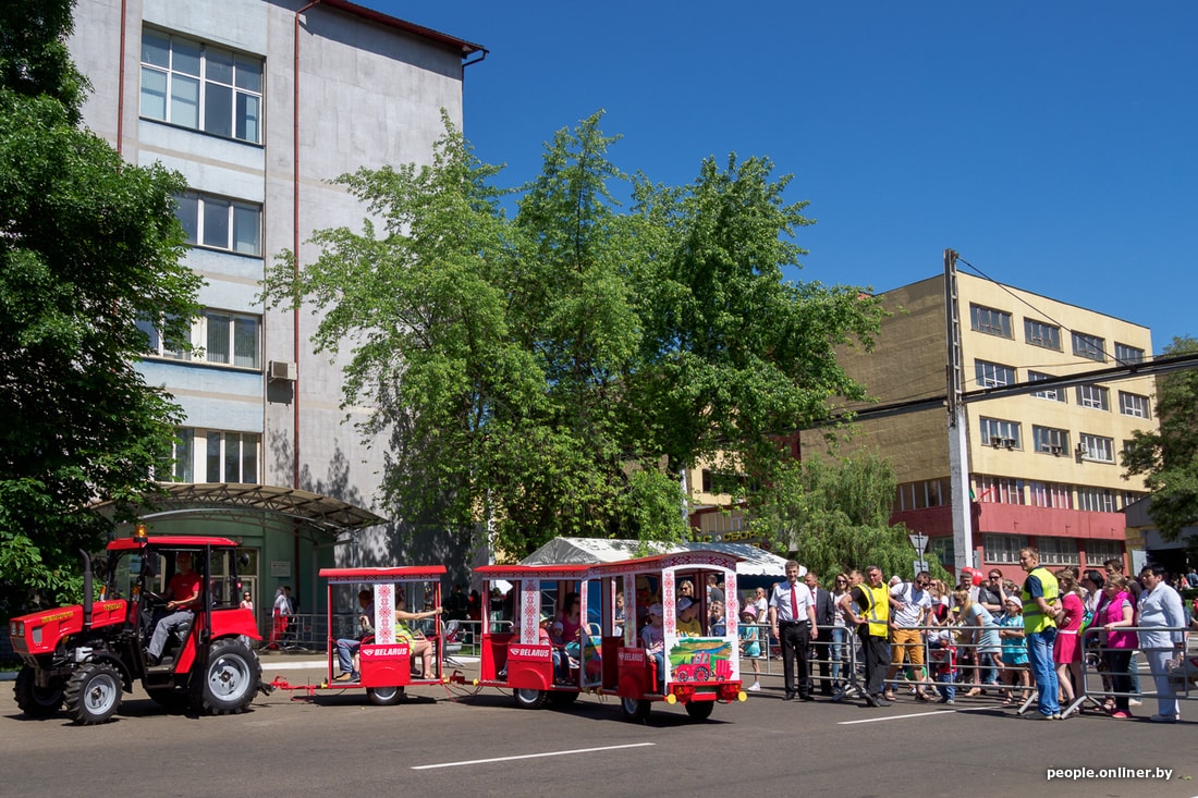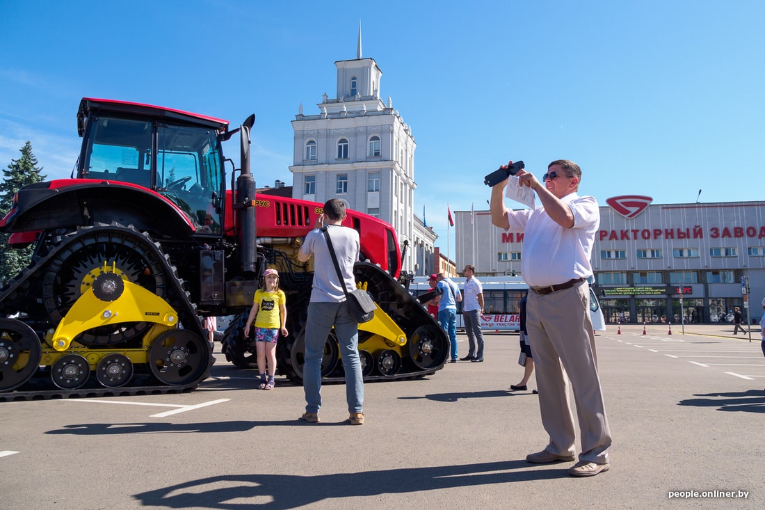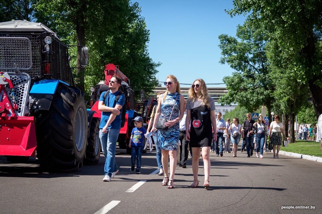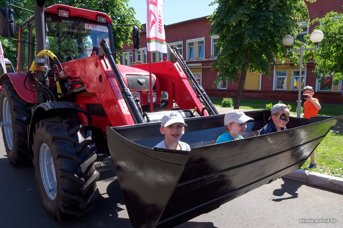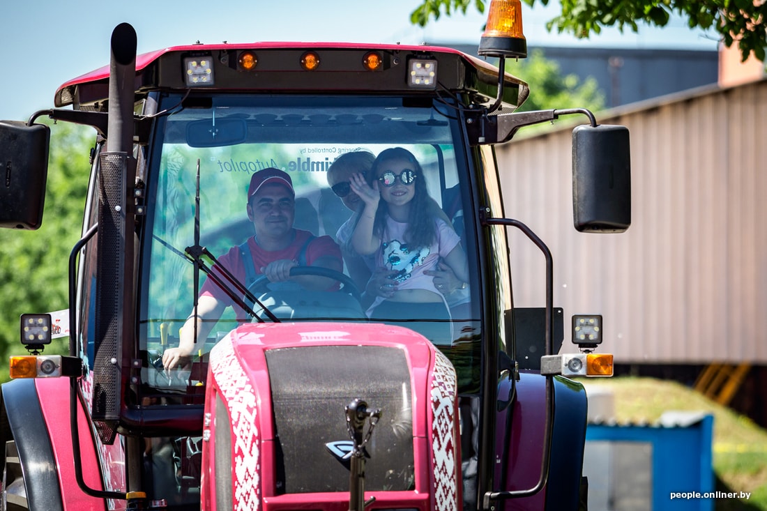 Минский тракторный в честь своего дня рождения организовал праздник для горожан и семей работников. Проходную в этот день открыли для простых гражданских. Людей катали на тракторах, показывали технику, дети смогли увидеть рабочие места родителей. Одним из примечательных событий стала демонстрация новейшего 500-сильного трактора, который еще не пущен в серию. Подробности — в нашем фотоотчете.