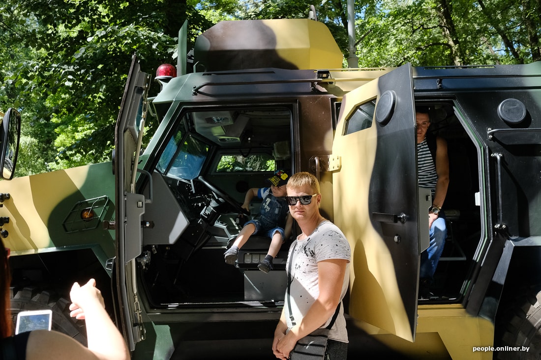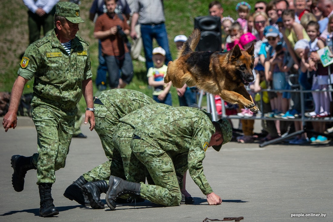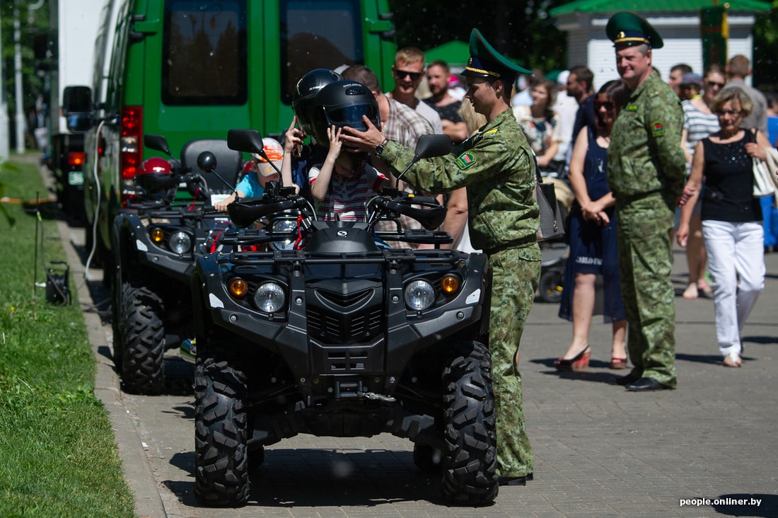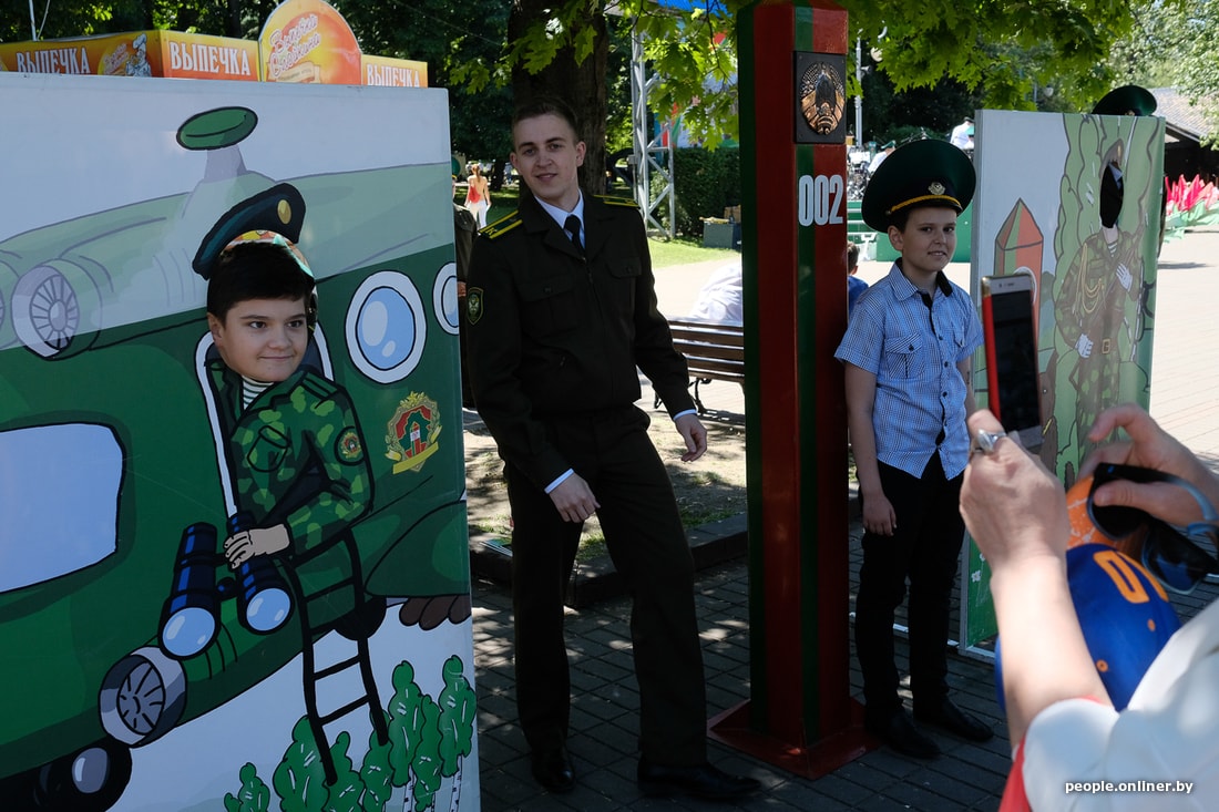 Пограничники не привязываются к воскресеньям — дата четко определена. Но захватить вчерашнее воскресенье было не грех. На аллею парка Горького на радость детям выкатили технику. Потом танцы, собаки, песни.