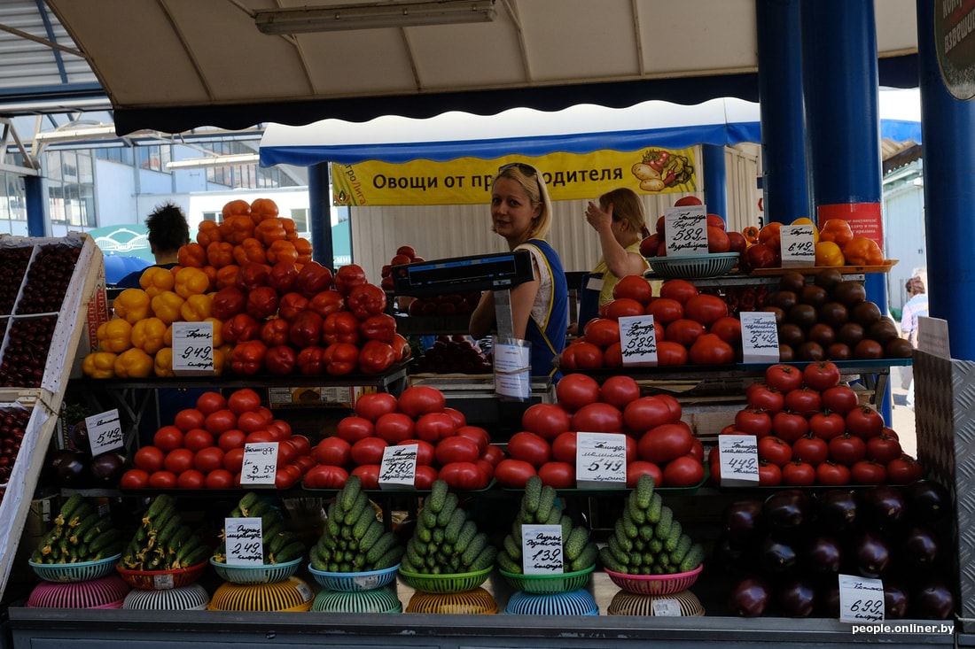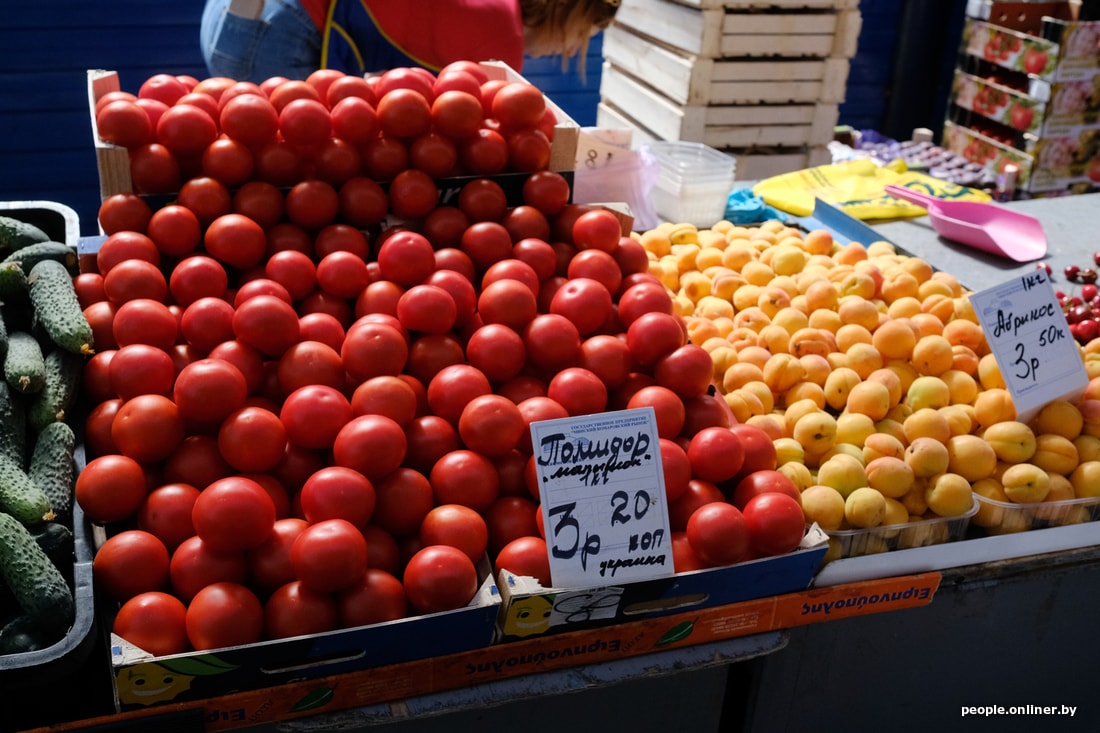 Бакинские помидоры одни из самых дорогих на рынке: 18 рублей! Благо на помощь спешат белорусские томаты из Рудаково. Они готовы отдаться килограммом за 2,80 рубля. Украинские обойдутся на 40 копеек дороже.