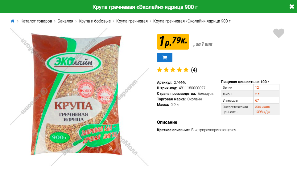 | Гречневая крупа (0,9 кг) | 2,69 | 1,79 (−34%) |