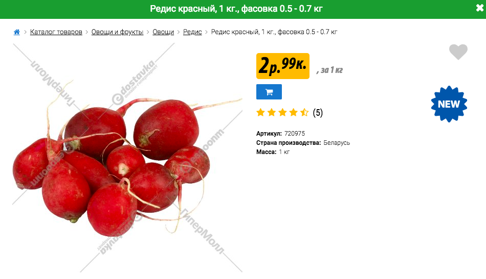 | Красный редис | 2,49 | 2,99 (+20%) |