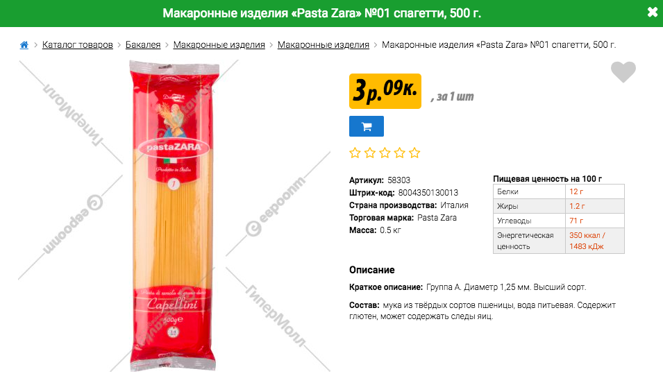 | Спагетти Pasta Zara (0,5 кг) | 2,19 | 3,09 (+41%) |