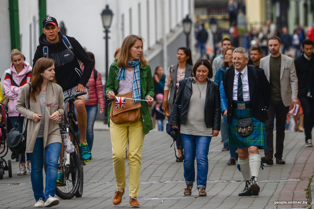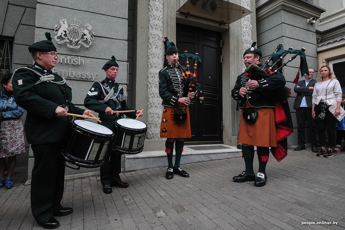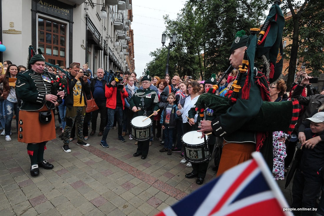 Праздник стартовал от посольства Великобритании. Волынщики 2-го Королевского ирландского полка вместе со зрителями прошествовали к Верхнему городу. Параллельно от Дворца спорта стартовал парад британских машин.