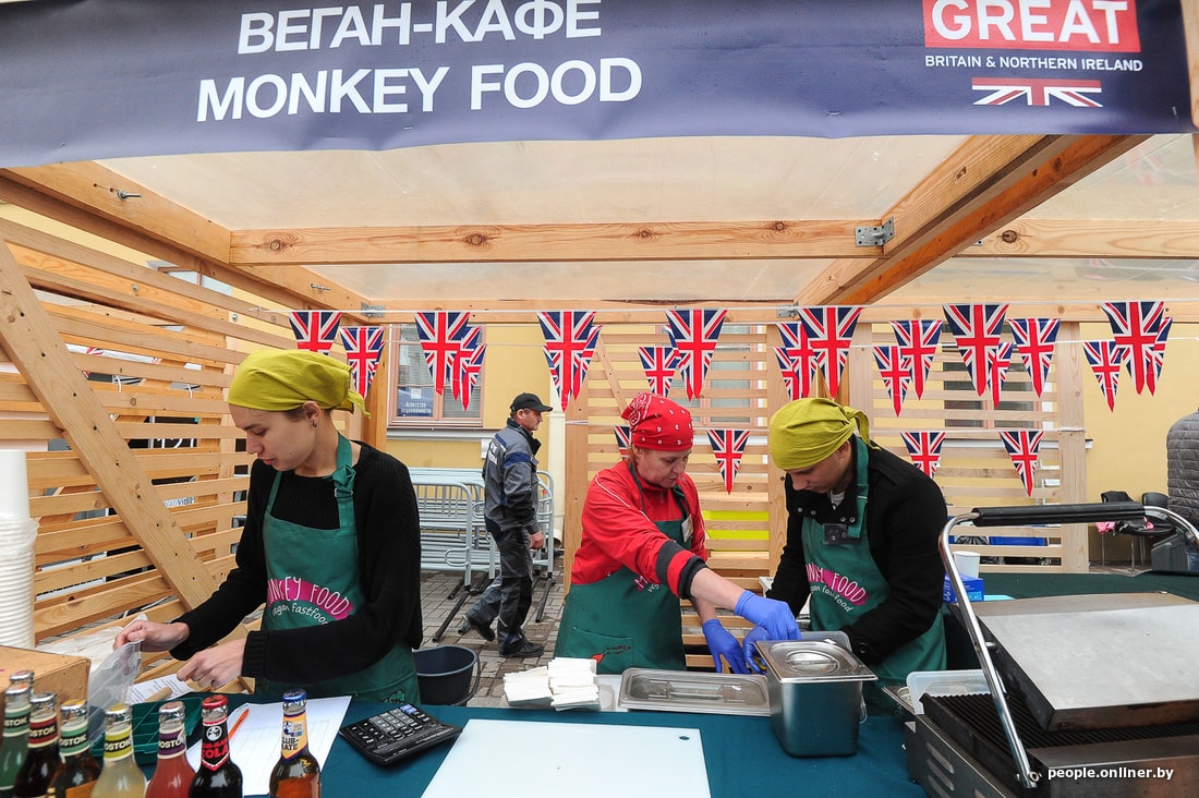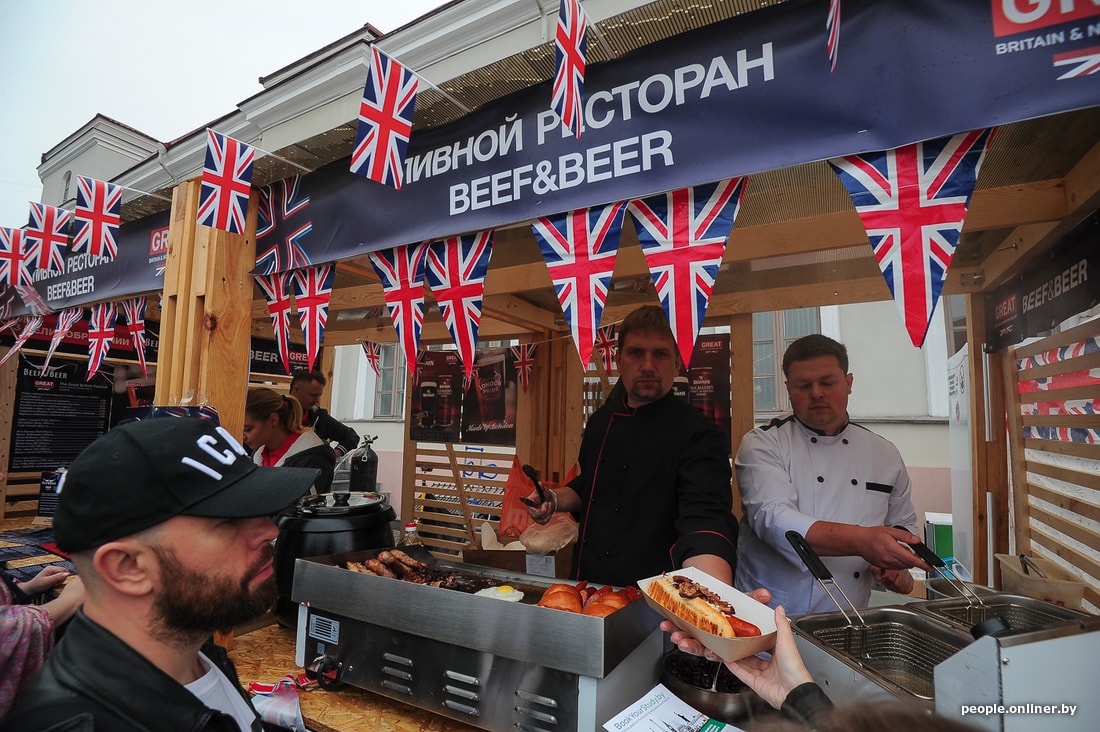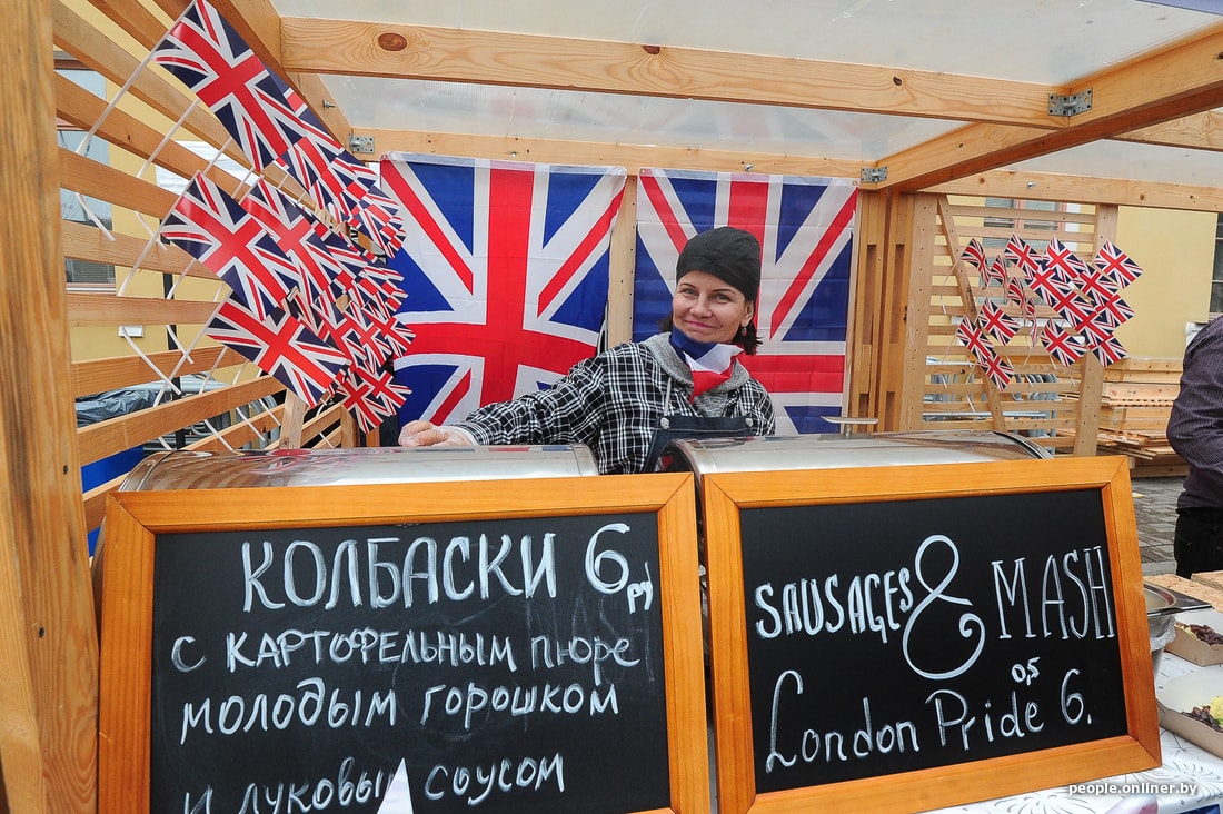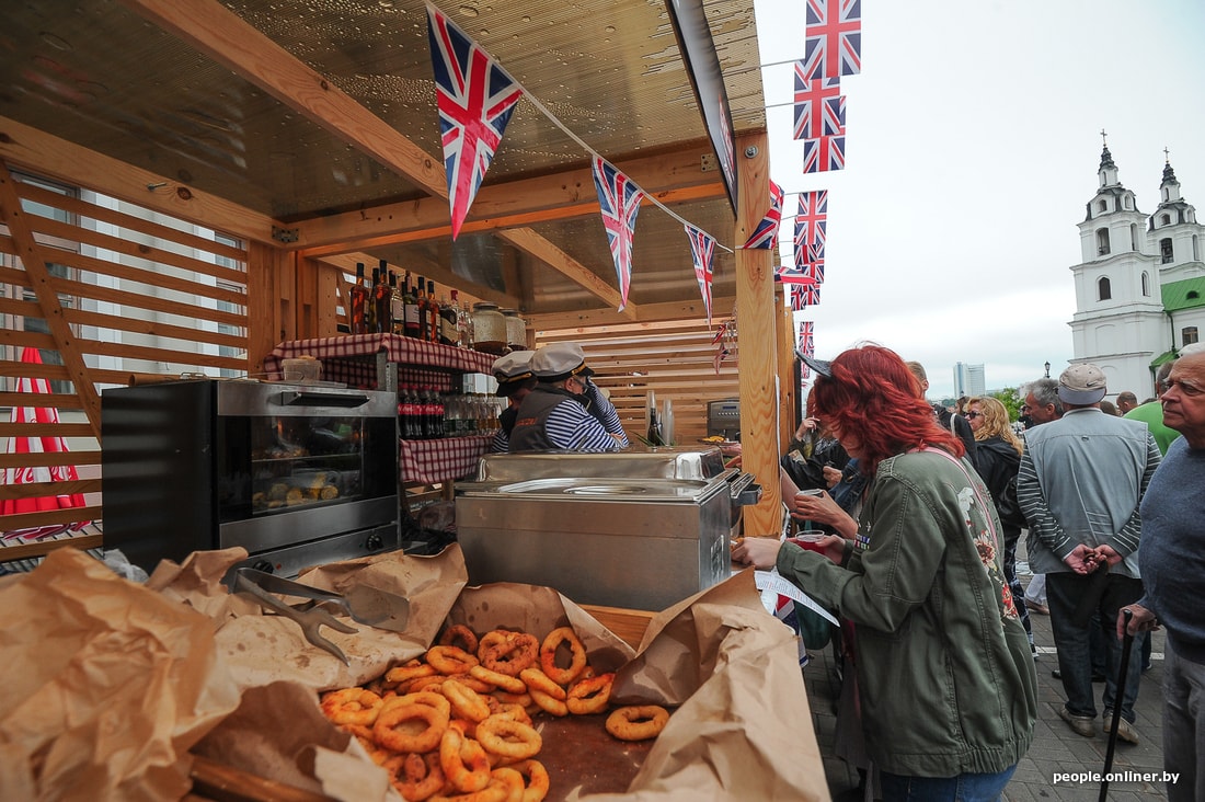 Между тем у точек с едой не было больших очередей, как это часто бывает на днях культуры в Верхнем городе. За знаменитые фиш-энд-чипс с соусом тар-тар просят 8 рублей, за колбаски с картофельным пюре и брусничным соусом — 6,5. Яблочный сидр и джин-тоник обойдутся по 5 рублей. Из сладкого можно попробовать знаменитые английские пончики.