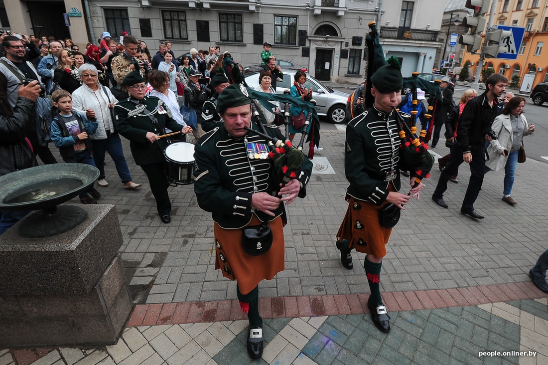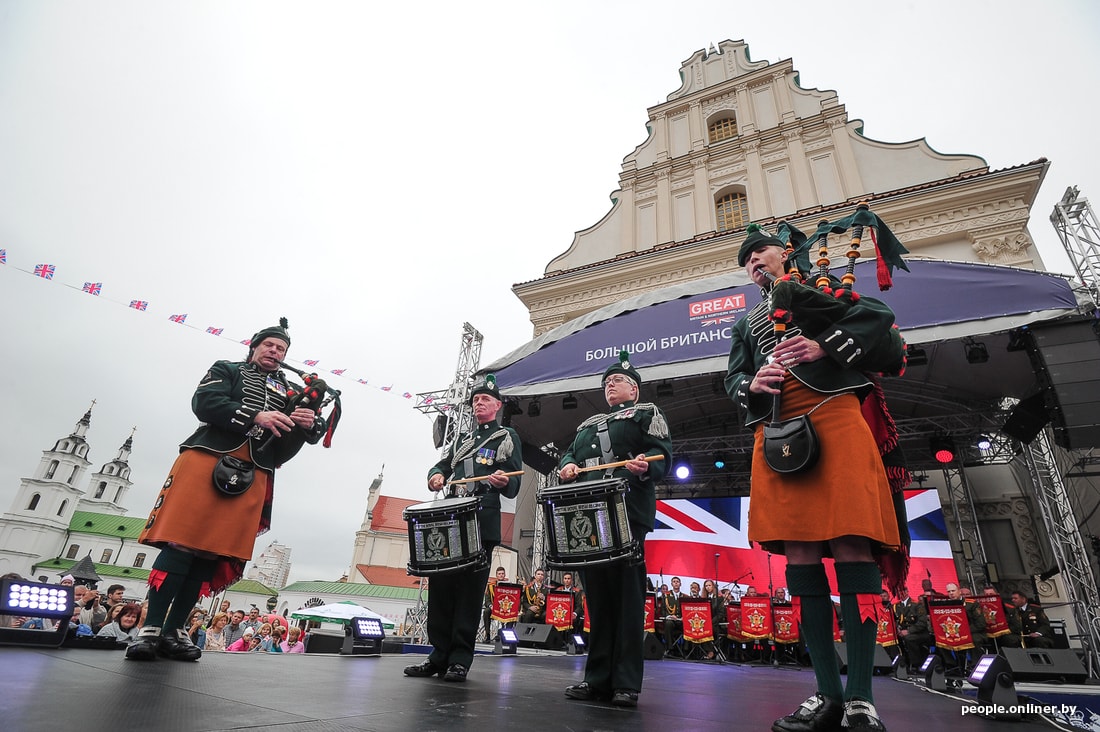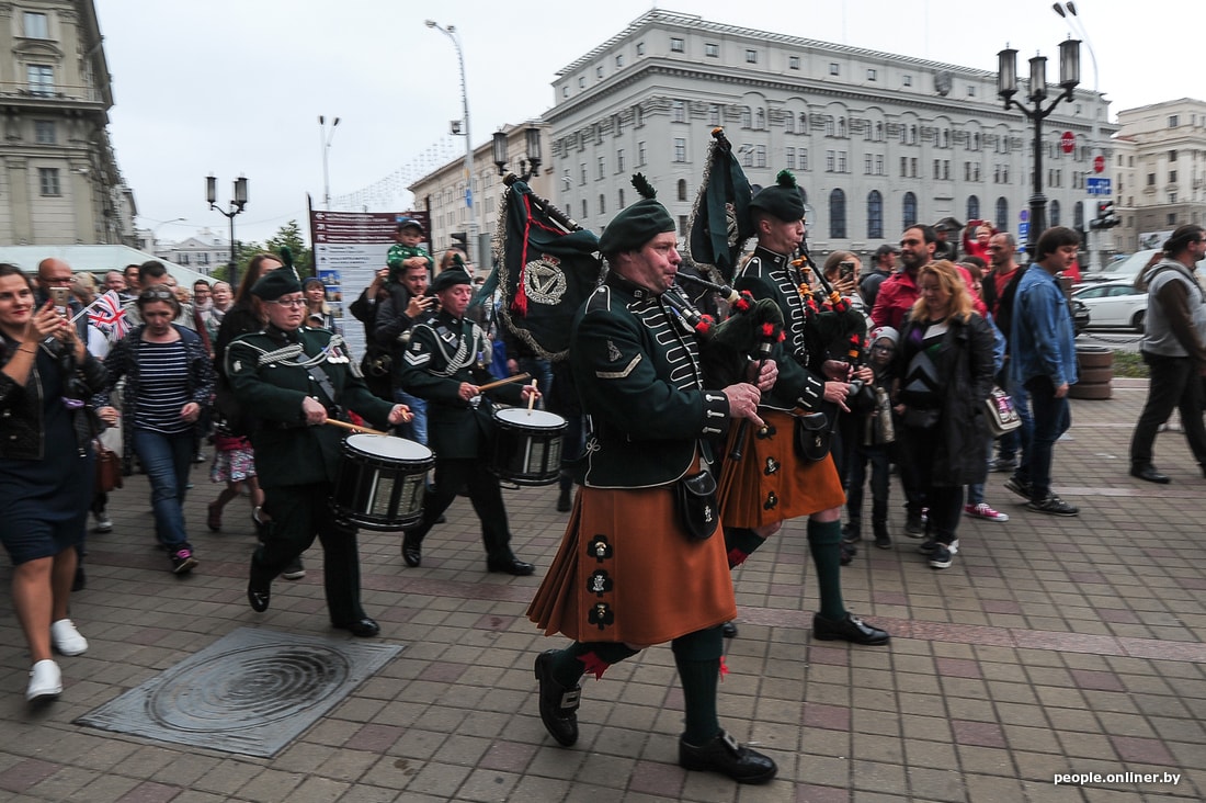 А концертную программу открыли все те же ирландские волынщики совместно с Образцово-показательным оркестром Вооруженных сил Республики Беларусь.