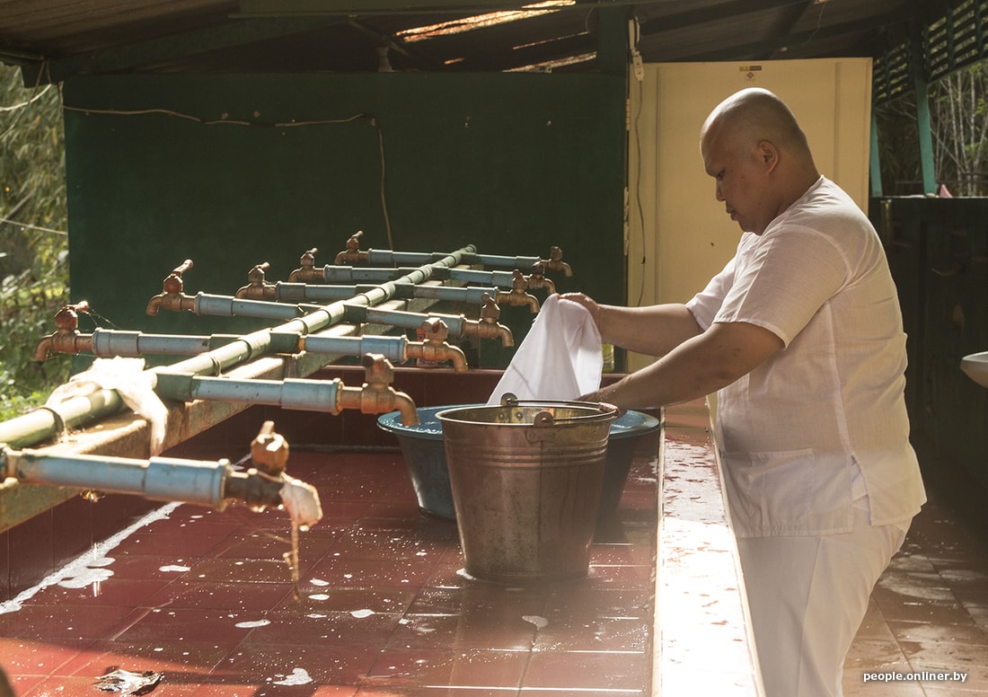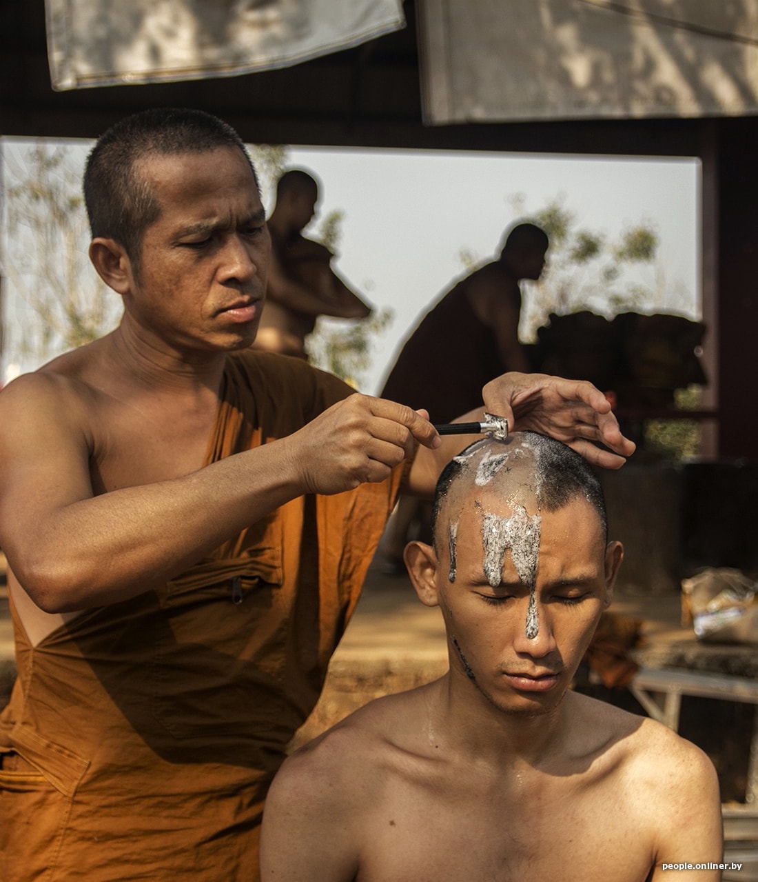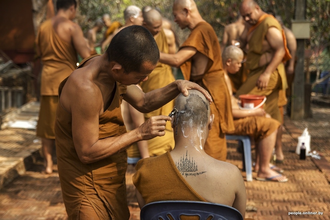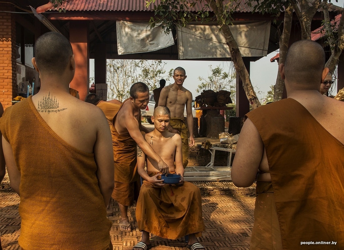 В один из дней нас повели на повторное бритье. Оказывается, данная процедура происходит в день, предшествующий полнолунию (раз в месяц). Сбривая волосы и брови, монахи максимально обезличивают себя, лишаясь важного признака сексуальной привлекательности, демонстрируя тем самым отречение от эго. А я только успел подумать, что успею хоть немного обрасти.