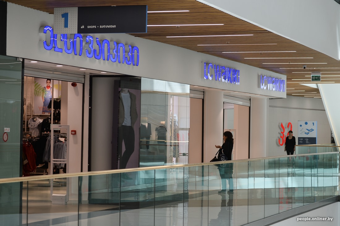 В городе имеется несколько крупных ТЦ. Проще всего добраться до Galleria Tbilisi (проспект Руставели, 2/4). Это самый центр. Понедельник, начало сезона, зевак мало. На первом этаже бросается в глаза огромный театр имени Грибоедова. Еще отряд крайне суровых людей в черных пиджаках. Охрана на каждом этаже. Ходят парами, стреляют из-под бровей недобро. Фотографировать не запрещают.