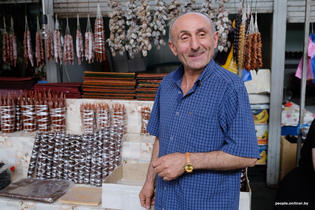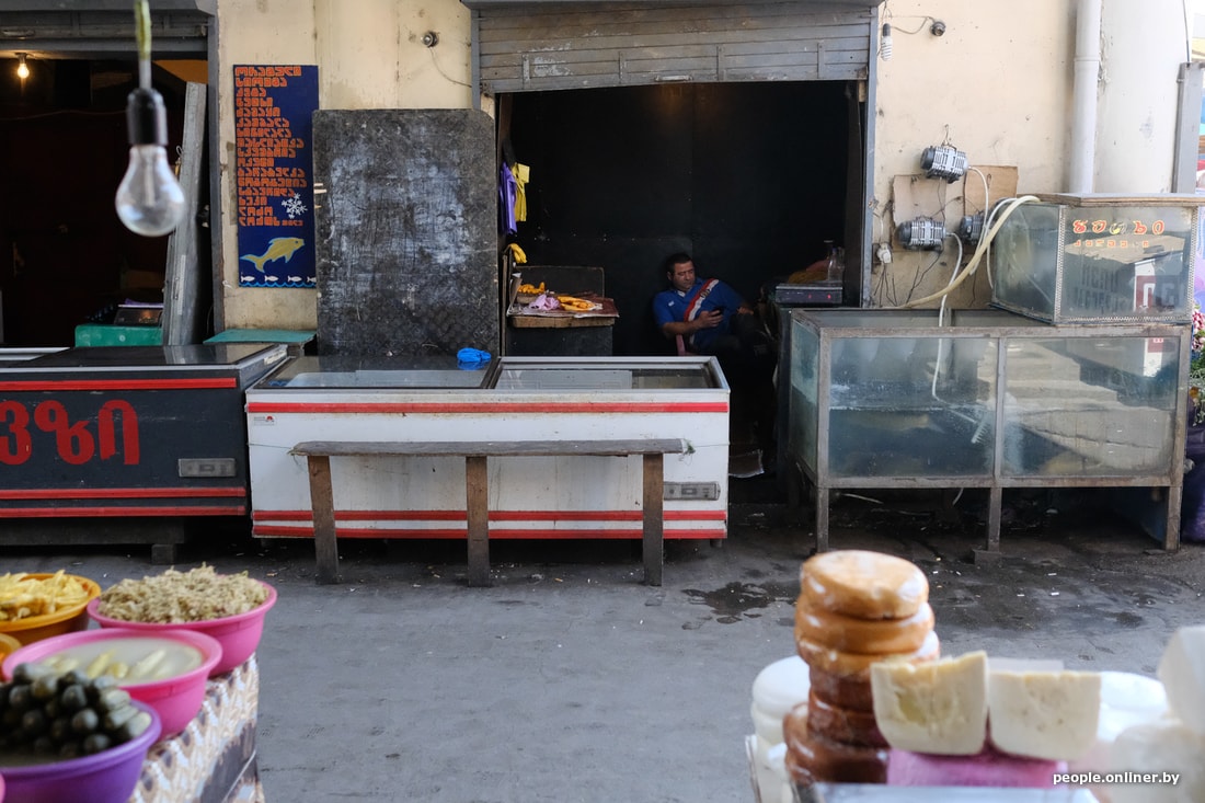 Обязательная программа для Тбилиси — рынки. Первый — главный продовольственный — Дезертирский. Сюда идут за продуктами: сочнейшими помидорами, грецкими орехами, чурчхелой (от 2 лари за штуку), специями (сванская соль, аджика и тому подобные), сыром сулугуни, бастурмой. Все можно пробовать. Побродив по рынку полчаса, вполне реально сэкономить на обеде. Если же вы планируете закупиться, то лучше идти с человеком знающим. Чурчхелу мы взяли в шестой точке: Бесо все не нравилось, как она выглядит, мнется, пахнет. Местный распознает качественный продукт на уровне интуиции. А туриста-незнайку могут легонечко и красиво обдурить.