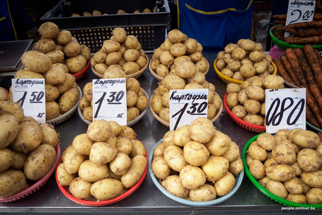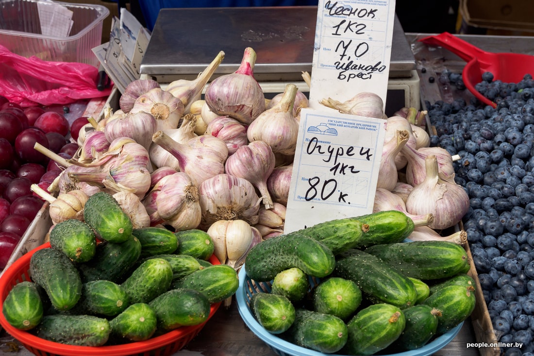 А еще есть смысл пробежаться мимо лотков с овощами и бульбочкой. Там много всего вкусненького и относительно недорогого. Цены на огурцы, например, за месяц не изменились.