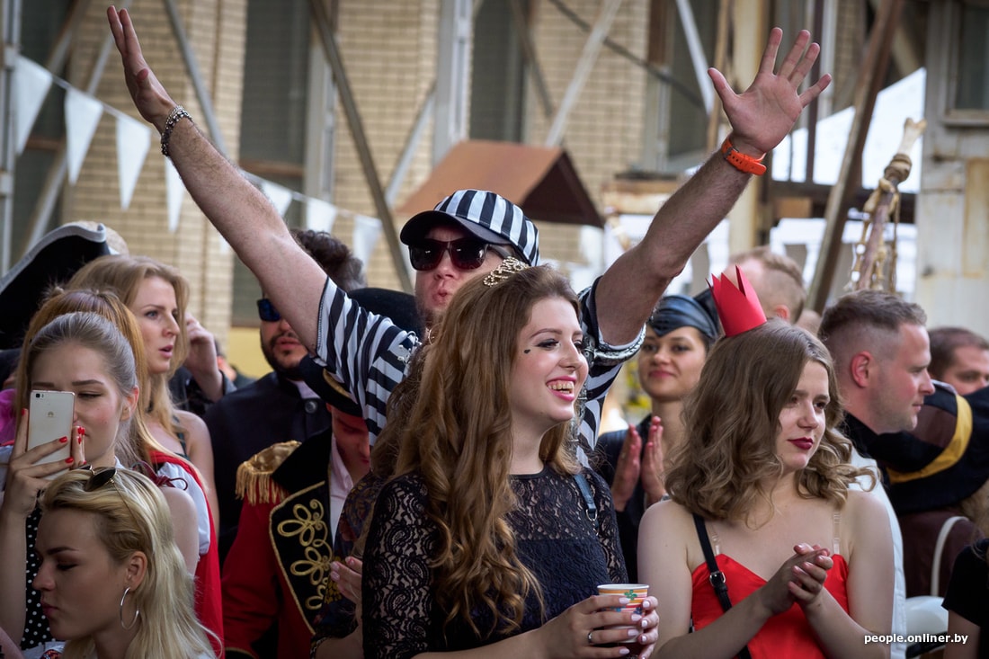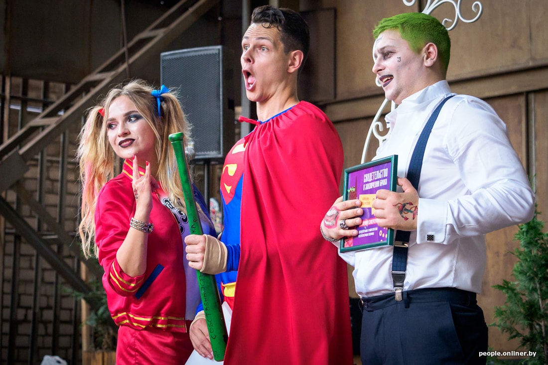 Кто-то привык к ресторану, тамаде и интересным конкурсам, а другие традиционное празднование свадьбы не приемлют. Так, пара из Минска решила встретить первый день новой семьи в необычном ключе и устроить костюмированное шоу, или — если желаете — косплей. Место действия — планомерно становящаяся культовой «Песочница». Примечательно, на свадьбу по предварительной записи могли прийти любые желающие пары.