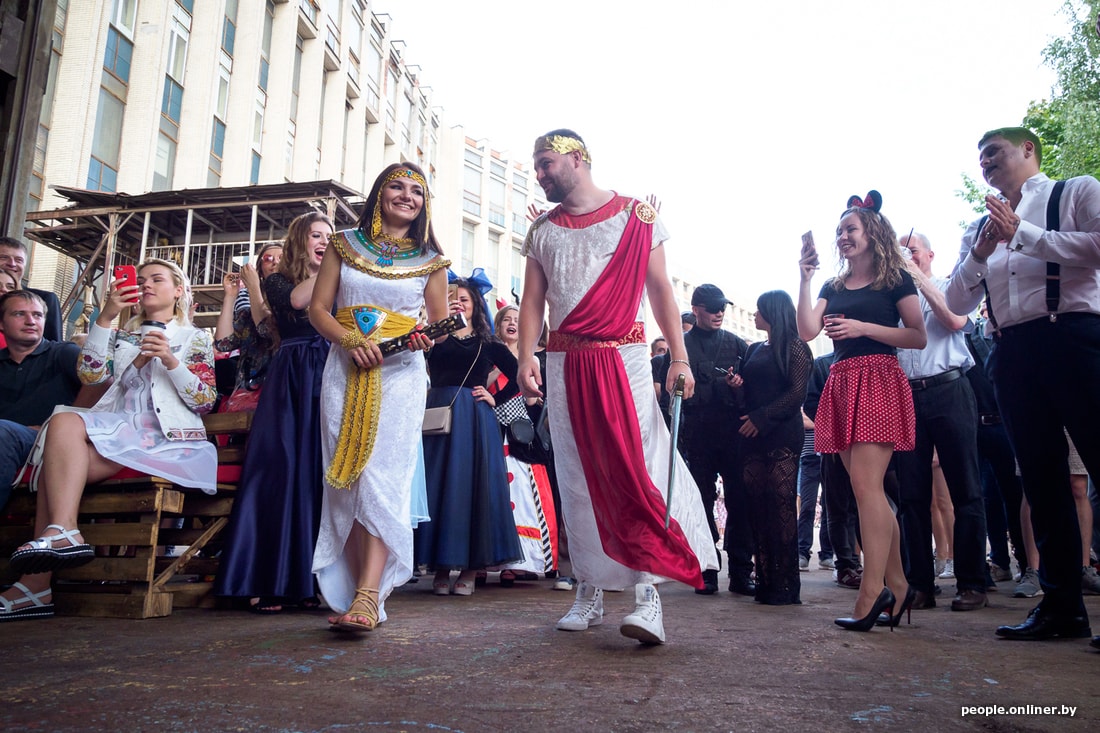 «Цезарь» и «Клеопатра» действительно стали мужем и женой в эту субботу. Планируя праздник, они решили, что среди гостей слишком много людей с разными вкусами и традиционный ресторан с тамадой такую публику не устроит. Отсюда и идея костюмированной вечеринки. «Потом мы пошли дальше, — рассказала Onliner.by Евгения, представшая в образе последней царицы Египта. — Мы объявили Open Wedding. На праздник приглашались (по предварительной записи) все желающие пары, которые хотели бы пожениться в этот день (без штампа в паспорте) или же подтвердить свои клятвы, данные ранее». Что из этого вышло — в фоторепортаже.
