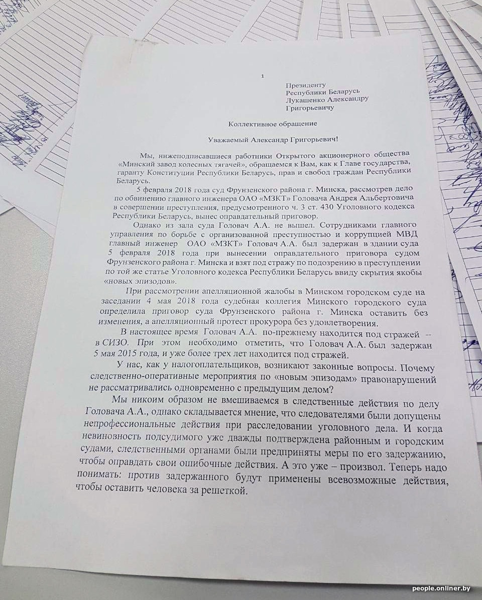 Сейчас коллектив МЗКТ обратился с письмом к президенту страны. Сотрудники просят президента обратить внимание на это дело и не держать Андрея Головача в СИЗО. Под письмом почти 900 подписей.