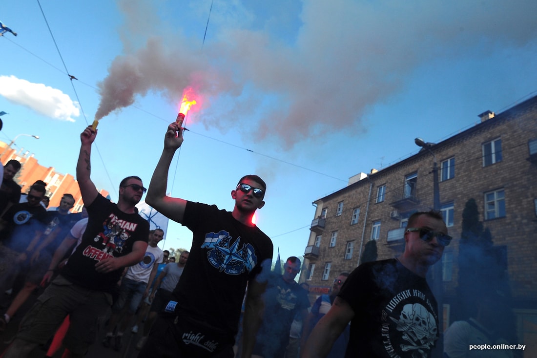 Футбольные фанаты «Зенита» провели в Минске так называемую «проходку». О начале шествия нам рассказали очевидцы, когда поклонники команды только «разогревались». «Это болельщики „Зенита“, я насчитал человек 700. Заполонили всю улицу, но ведут себя спокойно», — рассказал очевидец.