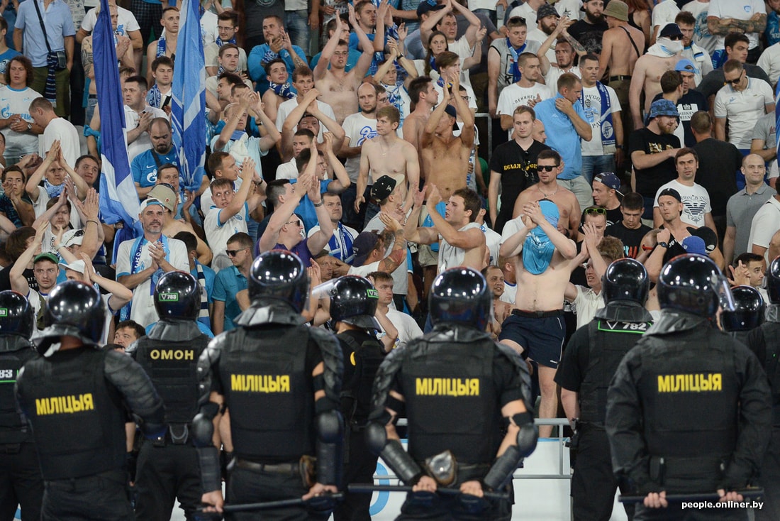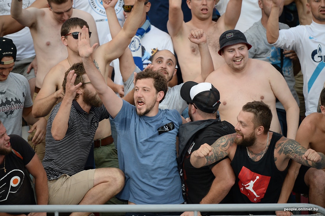 В 2008-м фанаты «Зенита» добирались в Минск на спецпоезде из 16 вагонов. На перроне их встречал тогдашний глава МВД Владимир Наумов. На питерском секторе жглись фаеры и вообще было живописно. После говорилось, что из Петербурга приехало 4800 болельщиков.