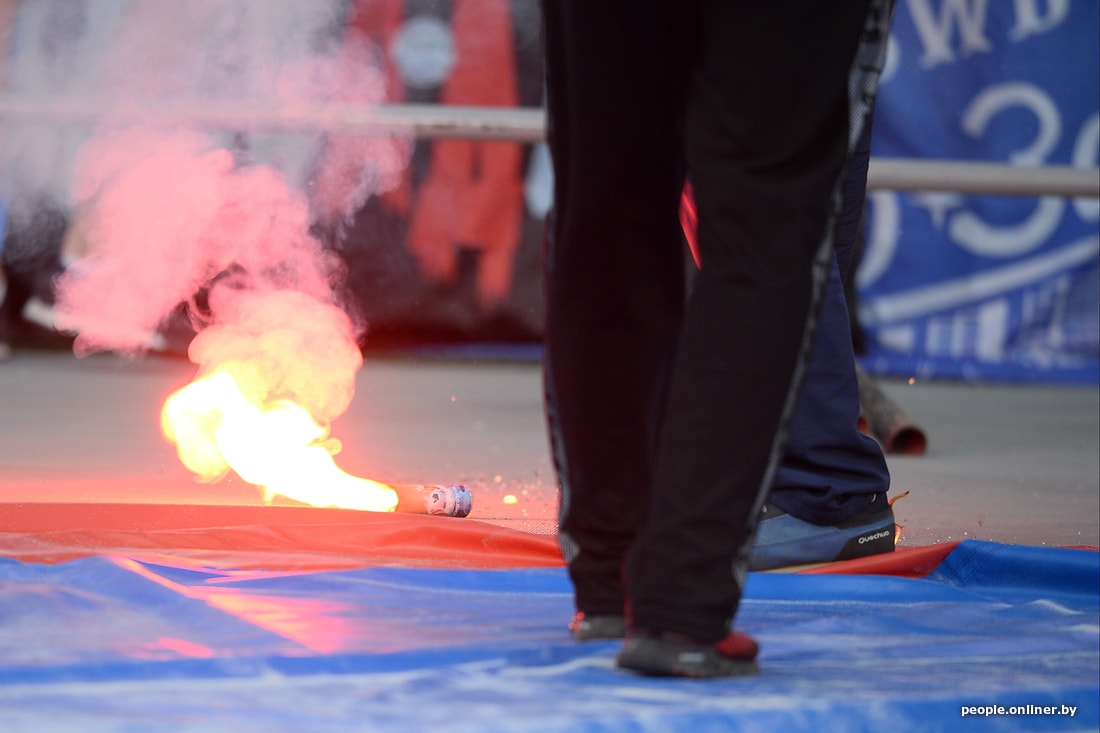 На беговую дорожку полетел фаер. Его затушили. Наиболее страстных ребят с гостевого сектора — тоже.