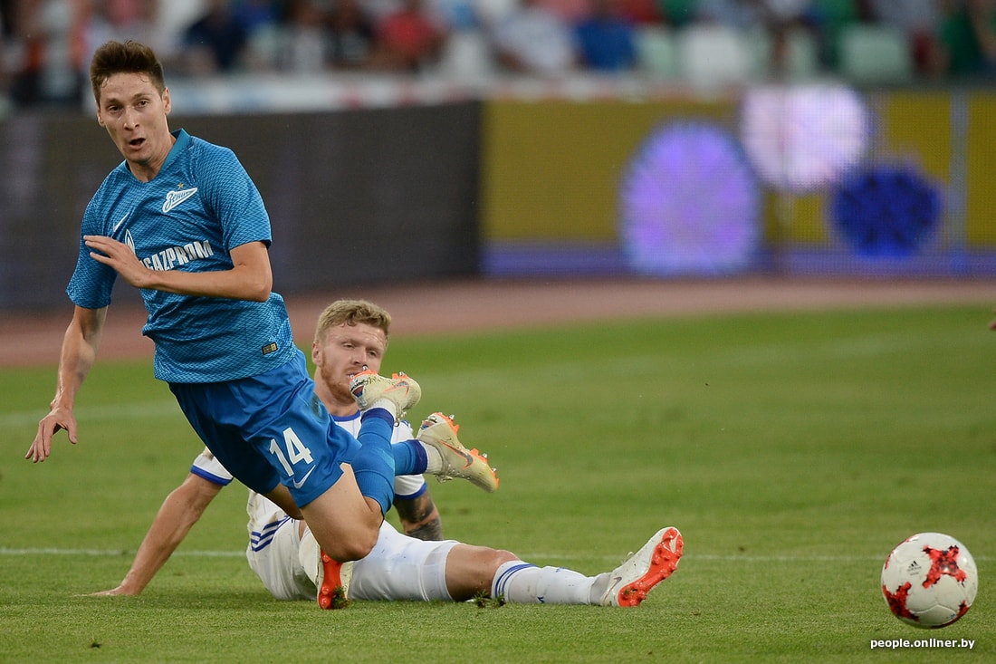 «Зенит», к слову, тоже приехал в Минск без топ-нападающего — Артема Дзюбы. Это тот русский парень, который тащил свою сборную в четвертьфинал на домашнем ЧМ. Получалось неплохо. Однако главный «Зенита» Сергей Семак дал ему паузу, чтобы отдышался от наполненного событиями лета. Тем более команда уже стартовала в своей лиге.