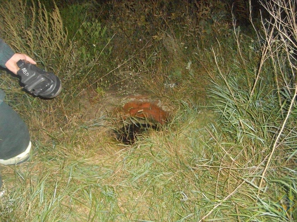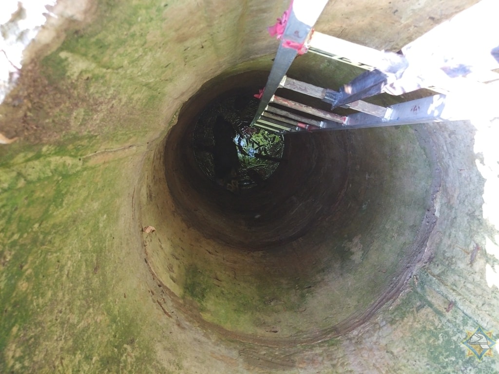 Вечером того же дня похожий вызов поступил из Калинковичей. Здесь собака угодила в спрятанный в траве 2-метровый водопроводный колодец без крышки. Тоже переместили в естественную среду.