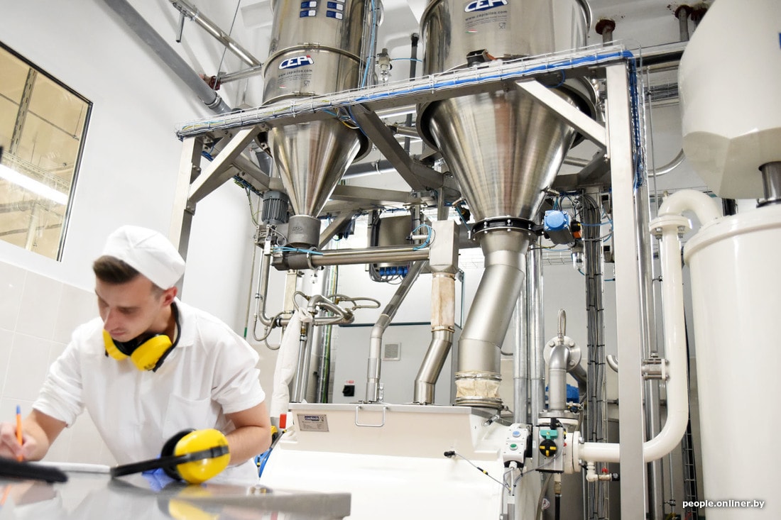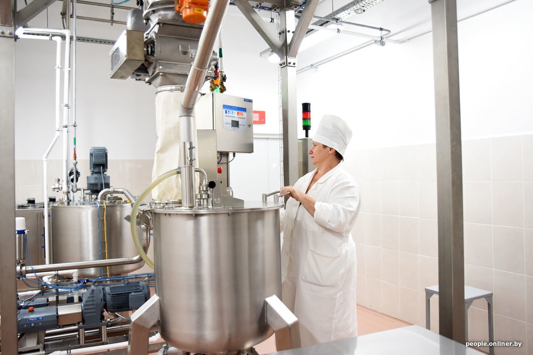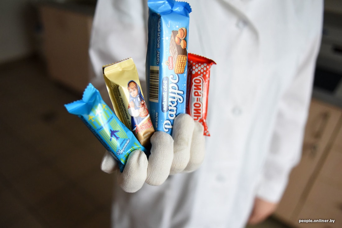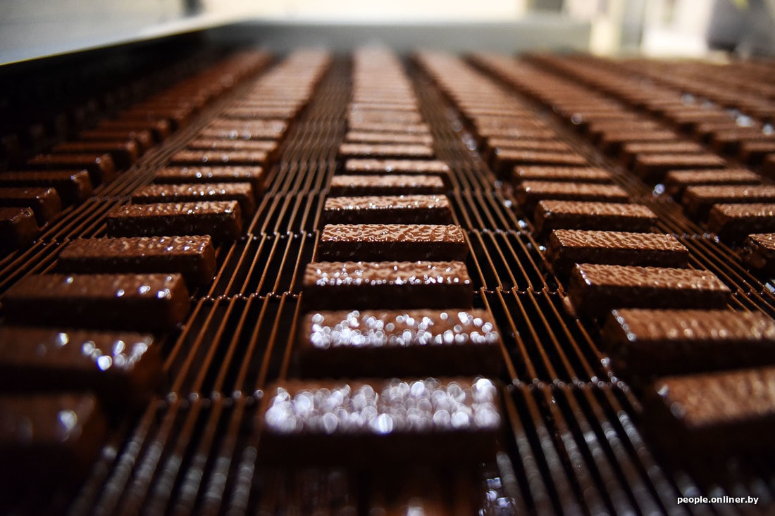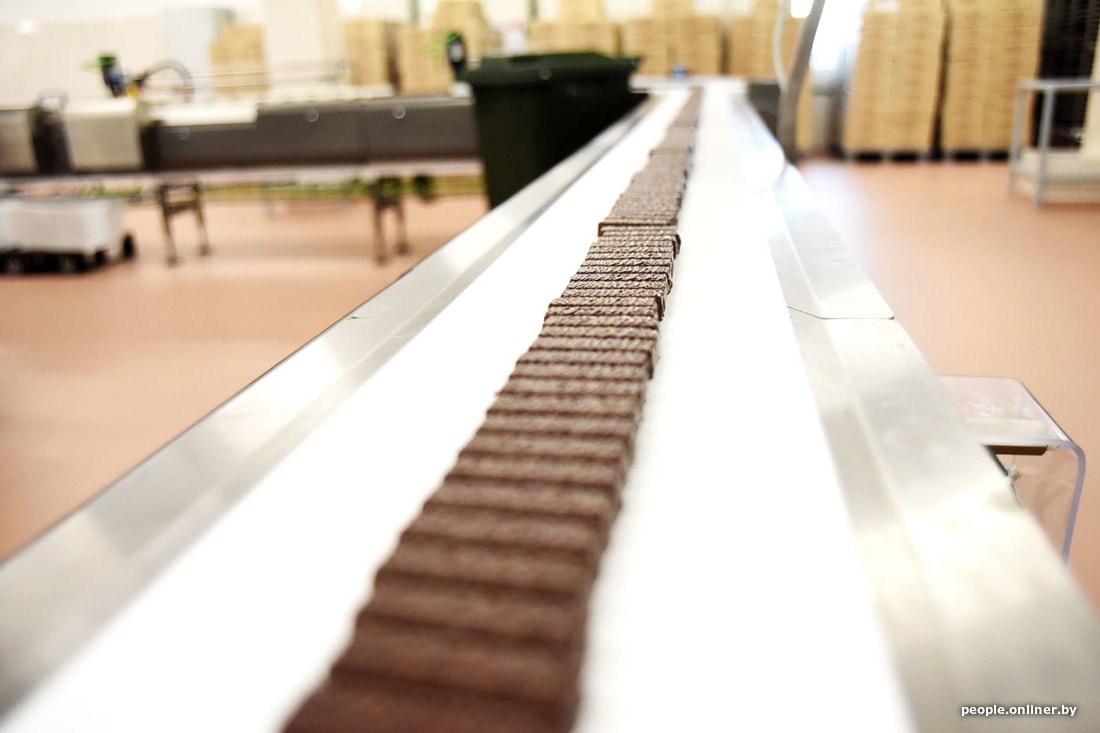 Производительность новой линии — 570 килограммов (конфет, батончиков) в час. Говорят, страна вполне успевает съесть, на складе продукция не лежит. Сегодня цех работает в одну смену (8 часов), хотят перевести на круглосуточный режим. Огромный цех с примыкающими помещениями и оборудованием обслуживают 18 человек.