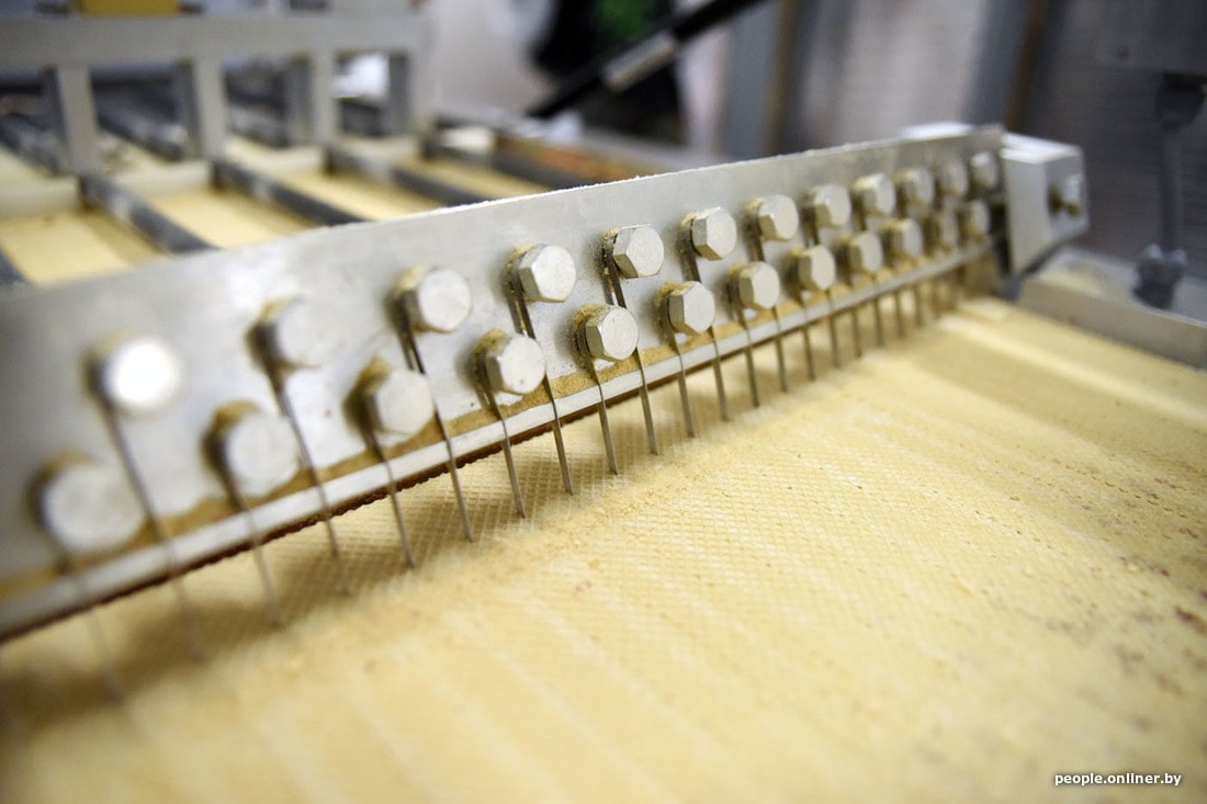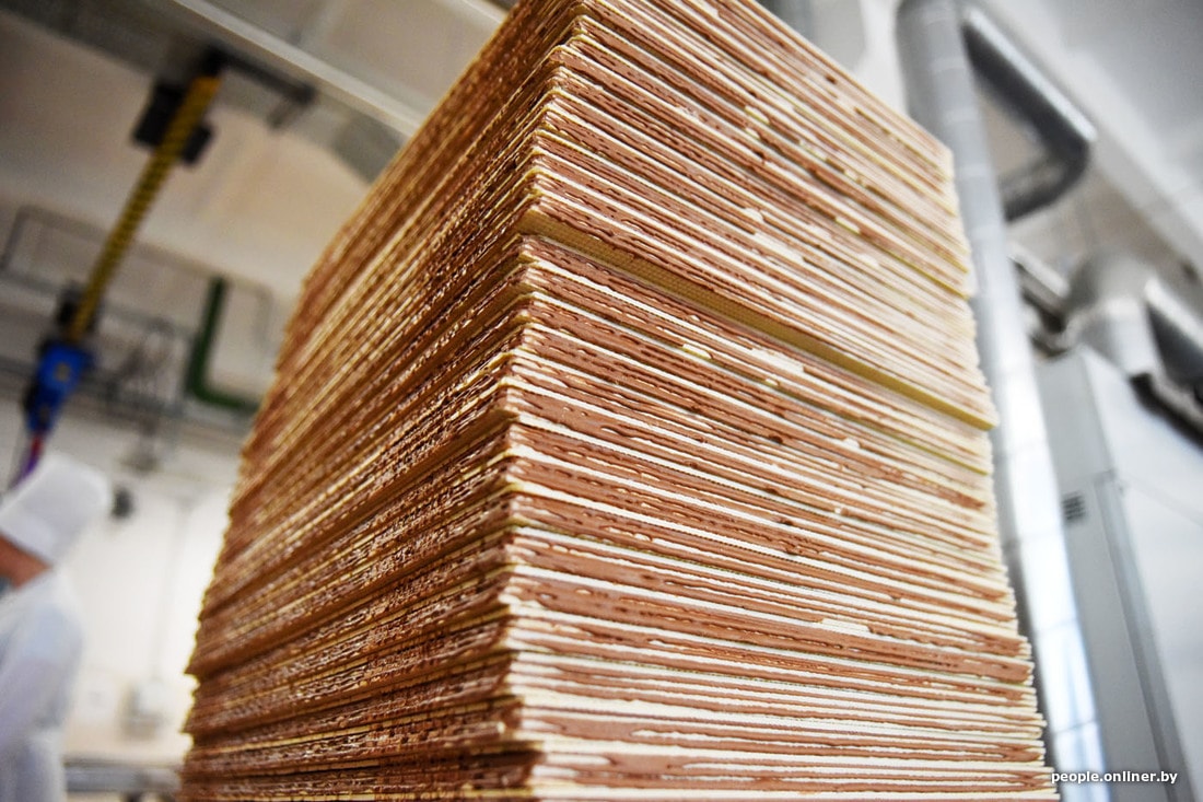 Готовый пласт весит 1493 грамма, допустимая погрешность — плюс 4, минус 2 грамма. Все это 19 минут выдерживается в специальном холодильнике.