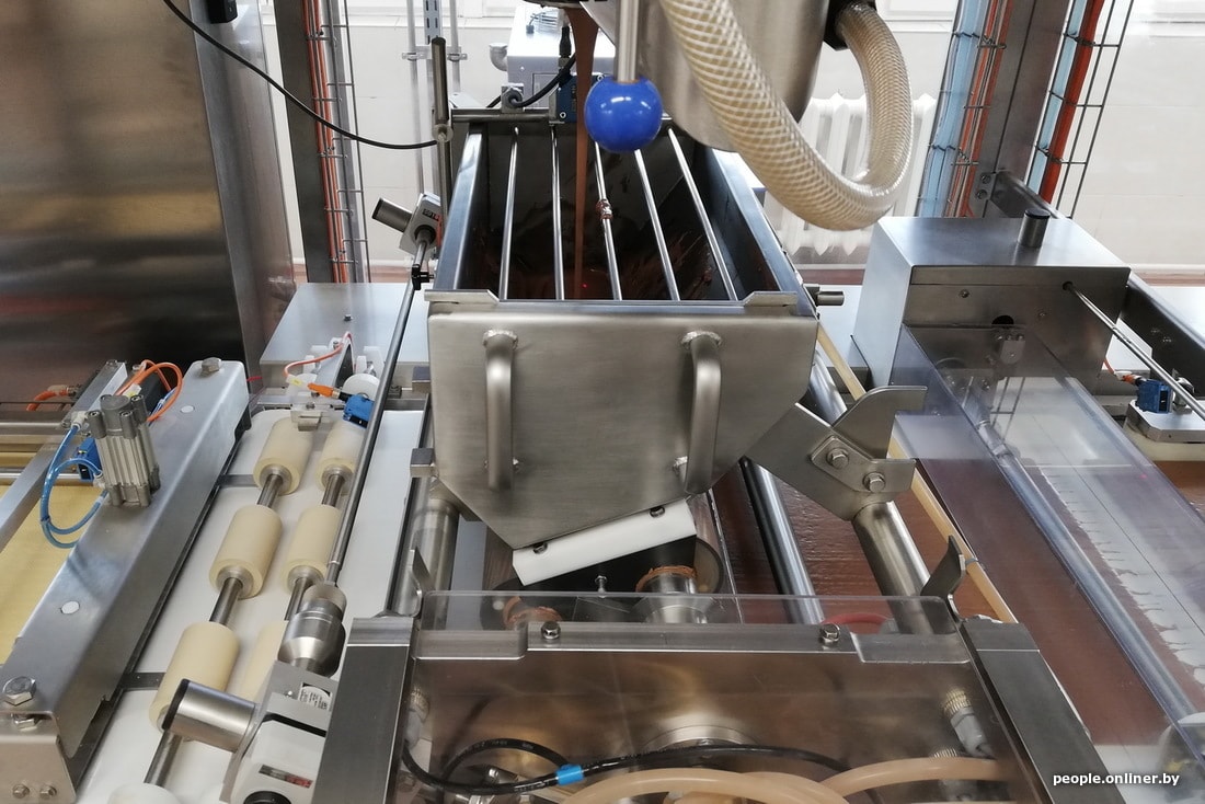 В 1989 году загорелся корпус «Спартака» — тот самый, который выходит окнами на Советскую. После этого здание реконструировали и применяли по разным назначениям. Но третий этаж фактически не использовался для производства последние 11 лет. В августе здесь наконец поставили новое оборудование. Называется все это «автоматизированная линия по производству глазированных и неглазированных вафельных батончиков и конфет». Раньше эта продукция выпускалась в другом цеху (частично он работает и сегодня).