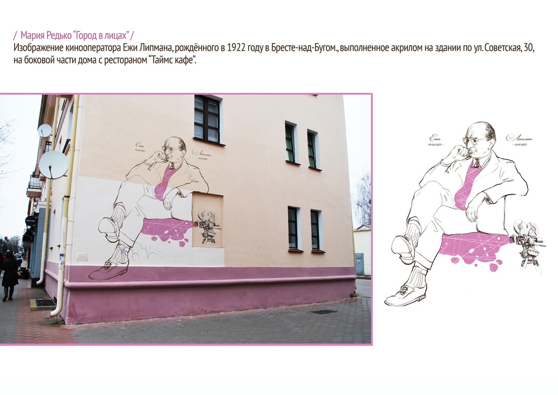 — Я давно интересуюсь айдентикой городов. Амстердам тот же — очень крутой пример. У меня постоянно фонило: «Надо что-то сделать для Бреста. Надо-надо-надо». И благослови наш горисполком… Вот серьезно, как бы ни гнали на них, есть там нормальные люди. Абсолютно адекватные, с горящими глазами. Меня даже два года назад попросили позвать городских художников к заместителю мэра. Он перед нами час выступал. Очень горячо говорил: «Вы молодые, инициативные, сделайте что-нибудь! Рассматривайте меня как ресурс, я вам все обеспечу». А горисполкомовец тот — парень моего возраста, может, чуть старше. Прогрессивный, образованный человек.