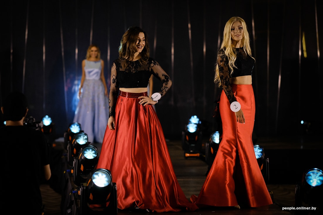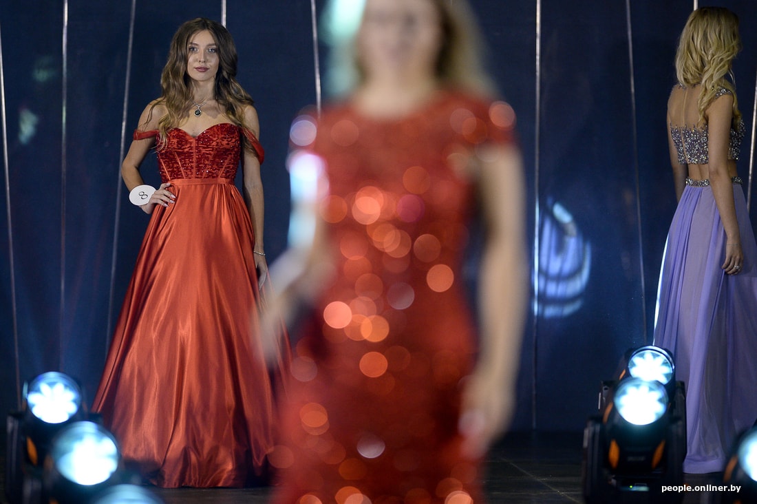 Во время дефиле в вечерних платьях девушки передвигались очень элегантно, но очень медленно, как катамараны по Свислочи. Казалось, вышагивать закончат ближе к понедельнику.