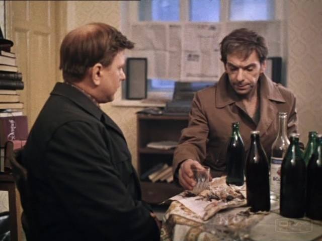 Кроме того, бытовое экранное пьянство можно трактовать как полную девальвацию советских идеалов. На соцреалистического героя всегда проецировались идеологические ценности и смыслы: служение государству и обществу, выполнение долга, желание сделать мир лучше и т. д. Слабый или инфантильный герой, который при этом постоянно нуждается в алкоголе, — это своего рода диагноз. Поэтому, кстати, кроме «народных» фильмов, есть несколько авторских кинокартин этого же периода, где на месте трогательной инфантильности оказывается растерянность и даже экзистенциальный кризис. И мажорная интонация тут же исчезает — повседневная жизнь оказывается далеко не так лирична, как в «народных фильмах» (и именно поэтому некоторые из них попали «на полку»). Эту тоску существования в обществе развитого социализма зафиксировали, например, такие чудесные и грустные фильмы, как «Отпуск в сентябре» Виталия Мельникова, «Тема» Глеба Панфилова, «Полеты во сне и наяву» Романа Балаяна.