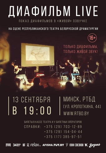 В четверг в Театре белорусской драматургии состоится очередной «Диафильм live» — это вечера показов диафильмов, вживую озвученных актерами и музыкантами. Организаторы воссоздают «ритуальную» атмосферу диапросмотра, показывают пленки с диафильмами советского времени на большом экране в новой интерпретации и «живом» актерском и музыкальном сопровождении.