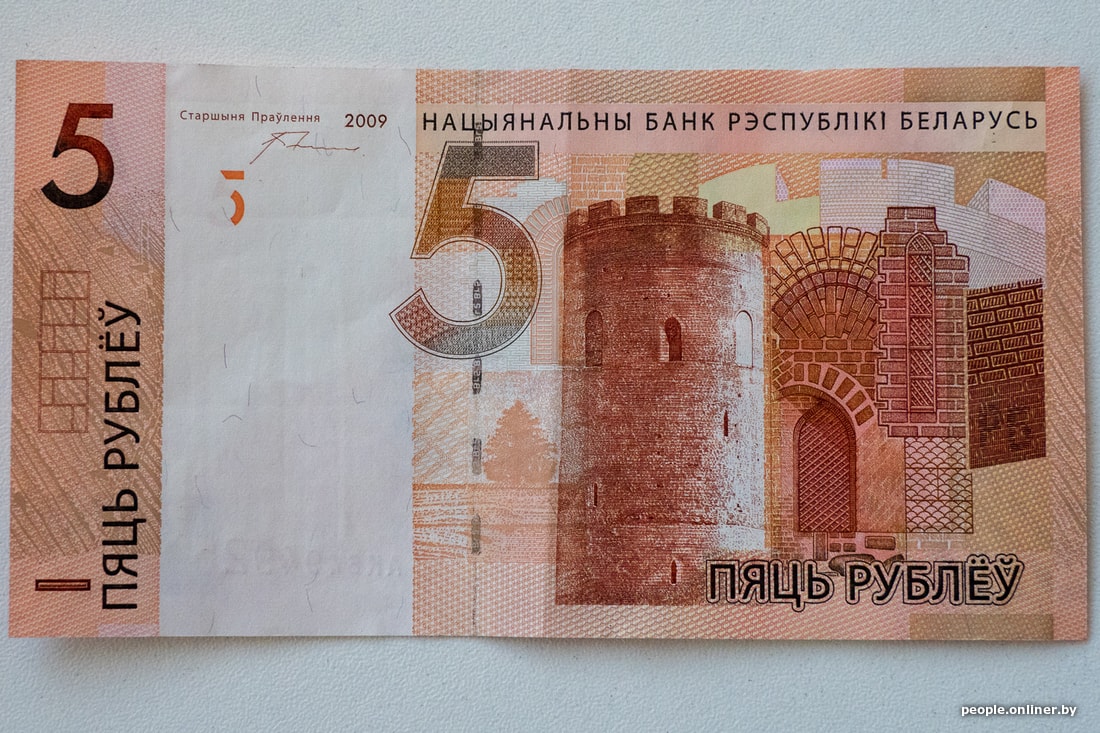 Напомним, на банкноте в пять рублей изображена Каменецкая вежа, на 10-рублевке — полоцкая Спасо-Преображенская церковь, на двадцатке — дворец Румянцевых и Паскевичей и на пятидесятке — Мирский замок.