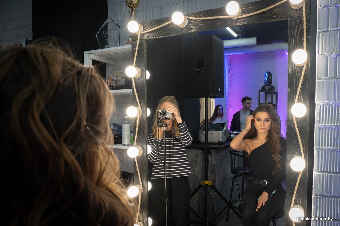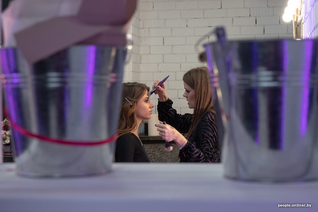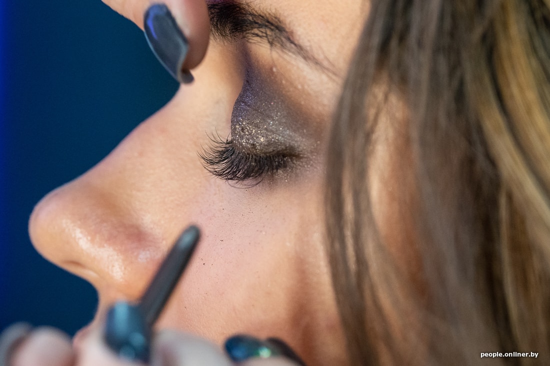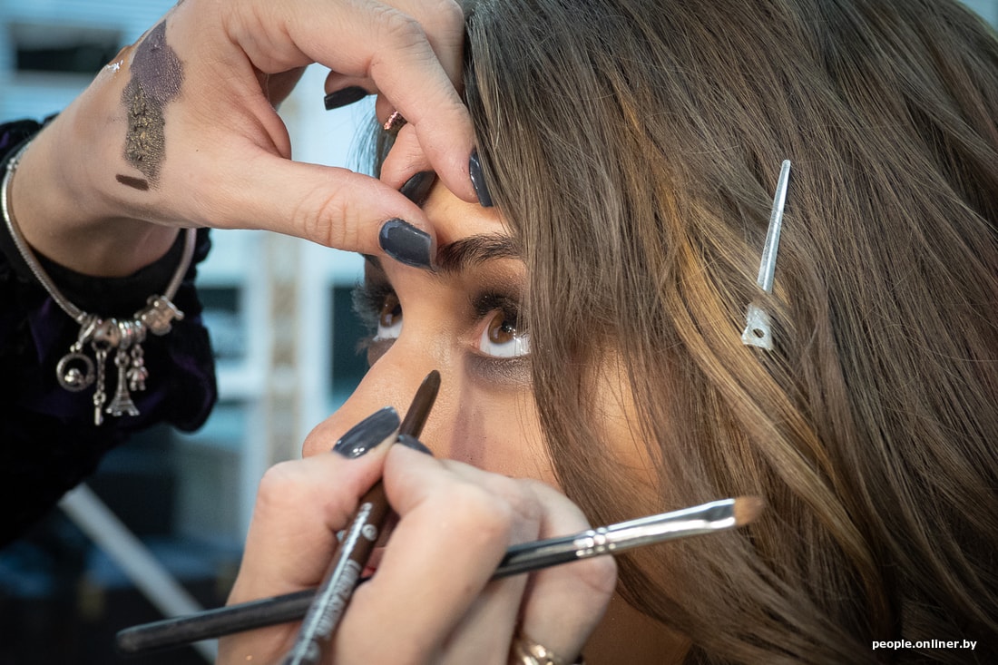 Тут Ирина отвлекается на визажистку, которая занята работой с моделью.