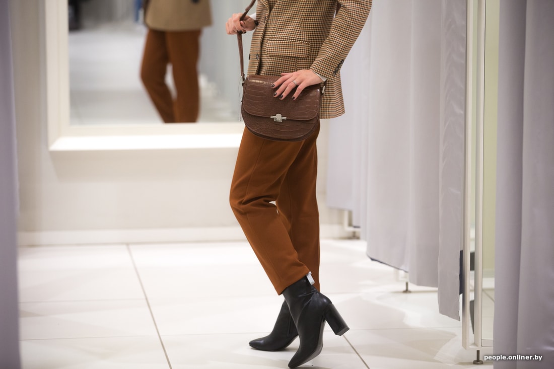 Параллельно я учитываю модные тенденции. В этом сезоне коричневый — это второй черный. Даже сейчас осмотритесь по сторонам: в магазине полно коричневого. Оттенки бежевого являются классикой.