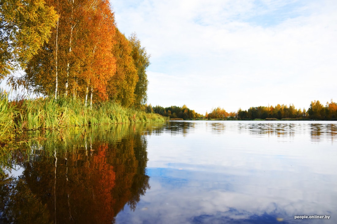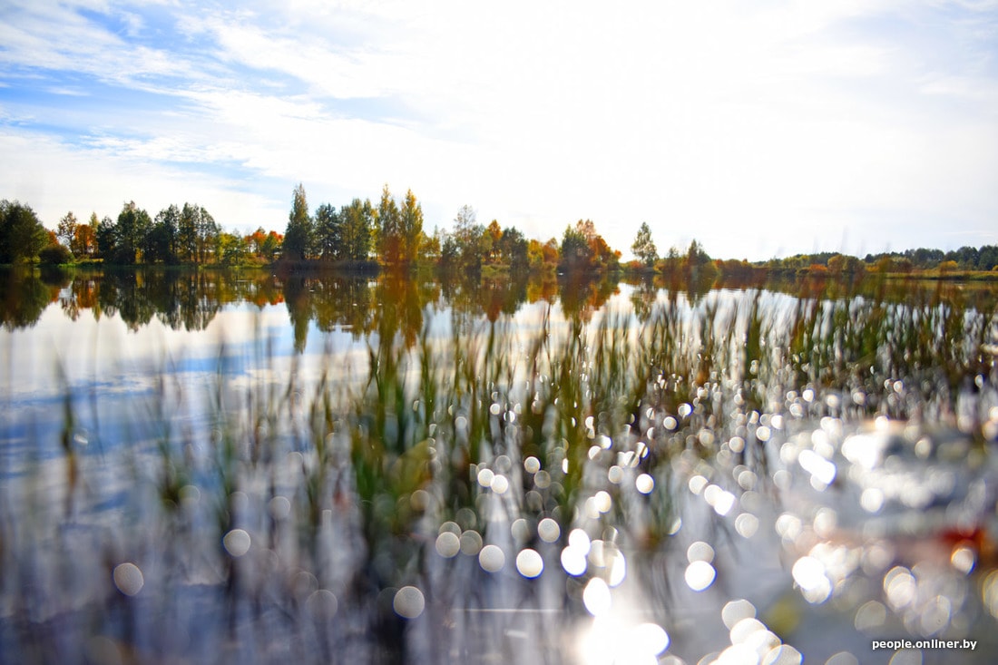Красавец Хотимск сияет в осеннем убранстве, переливается багрянцем и золотом. Серебряные нити паутины сверкают на солнце, вьются на теплом ветру. Гладь озера сливается с бирюзой неба… Так написали бы мастера слова и обладатели «Золотого пера». Жаль, мы не умеем.