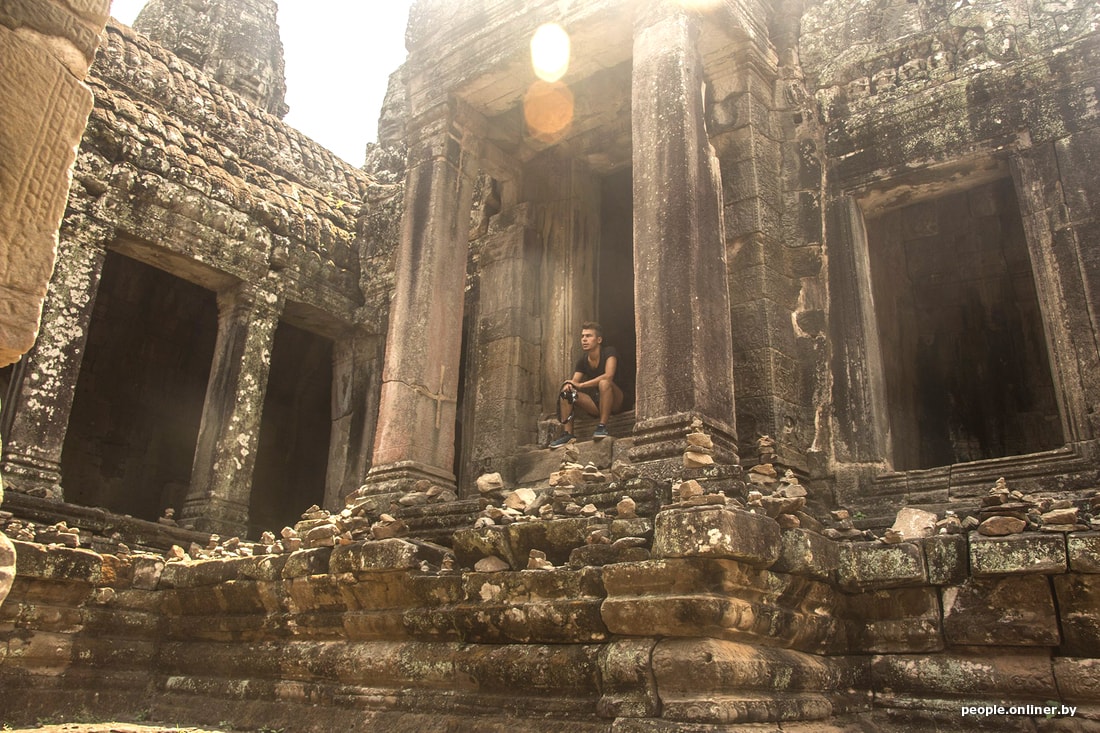 Пожалуй, единственным запланированным местом к посещению в Камбодже был храмовый комплекс Ангкор-Ватт. Именно он был центром древнего кхмерского государства, ныне — визитная карточка страны. Сняв хостел в близлежащем городе, мы арендовали велосипеды и сразу двинулись на разведку. Ангкор огромен, чтобы обойти его пешком, потребуется примерно неделя. Стоимость однодневного билета — $37 на человека, что для нас было неподъемно. Устроив бешеное велородео по джунглям, мы развернули диверсионную операцию по поиску лазов на территорию. В итоге таковые были найдены и нанесены на карту. Утром мы вернулись.
