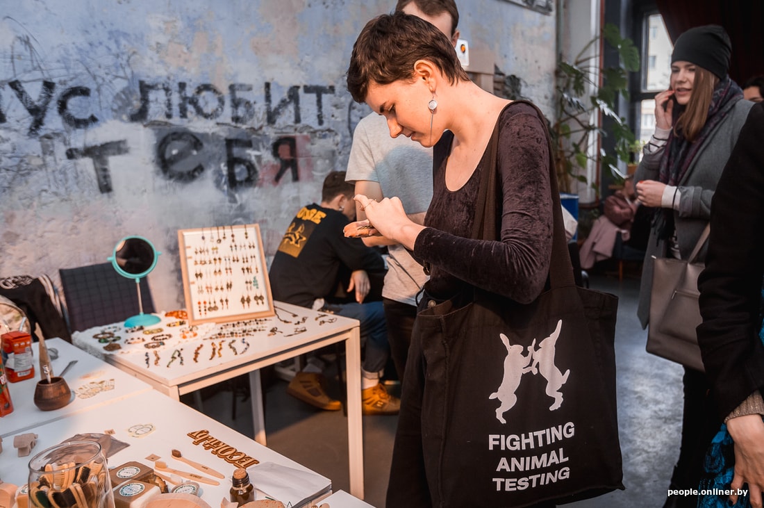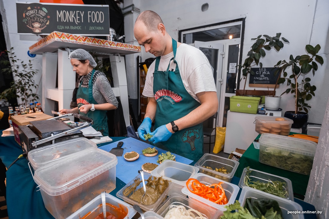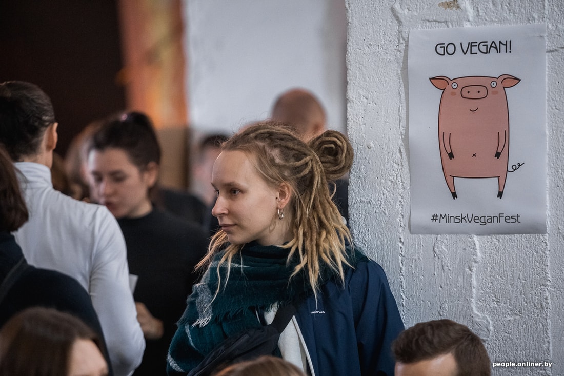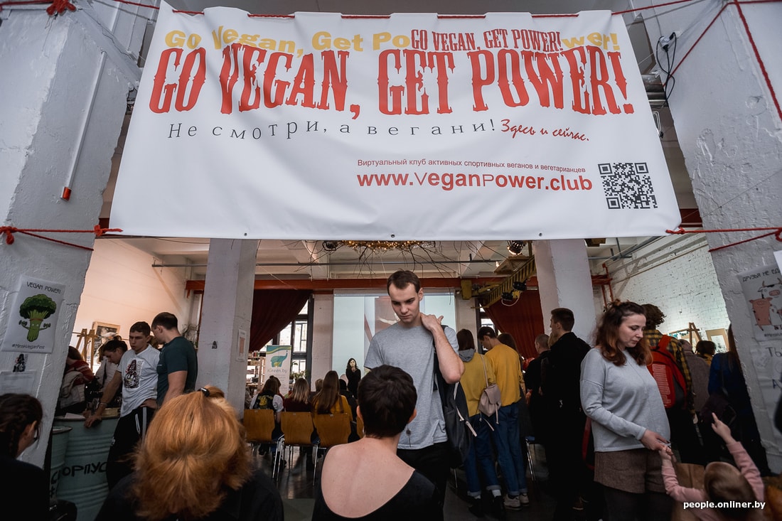 Марина и Илья приехали из Воложинского района посмотреть, как развивается этическая культура. Они говорят, что купить продукты для веганов в регионах нереально. Своего ребенка Тихона мясом не кормят, потому что «нечестно давать ему то, в чем ты сам для себя не видишь пользы».