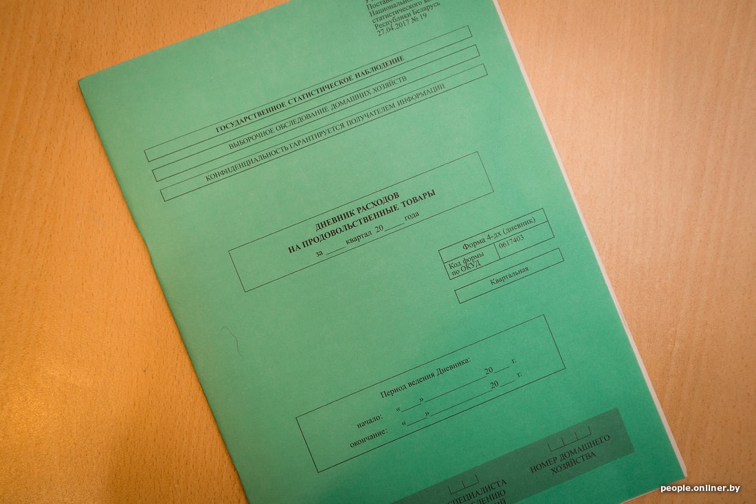 Каждый квартал в течение двух недель Нина ведет «Дневник расходов на продовольственные товары», в который ежедневно записывает все продукты, которые покупала и употребляла семья. Также каждый месяц она заполняет «Журнал ежемесячных расходов и доходов» — здесь указывает, когда и что покупала из непродовольственных товаров, сколько тратила, какие доходы получала и так далее. Кроме этого, проводятся и дополнительные опросы: о доступе домашних хозяйств к информационно-коммуникационным технологиям (наличие компьютеров, мобильных телефонов и прочих устройств), о жилищных условиях и так далее.