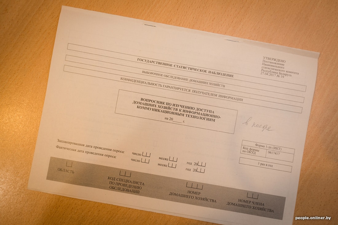 Раз в год семья заполняет «Вопросник для основного интервью». В нем содержатся вопросы по составу домохозяйства, возрасту, образованию, профессии и так далее. Также нужно заполнить четыре «Ежеквартальных вопросника по расходам и доходам домашних хозяйств». Тут вопросы про «коммуналку», крупные покупки бытовой техники, расходы на образование, здравоохранение, отдых, кредиты, штрафы и так далее.