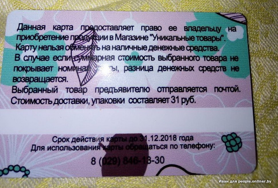 После публикации, как это всегда бывает, отозвались и другие клиенты подобных контор. Иван, например, прислал для наглядности список товаров, за которые можно расплатиться картой. Их цены не указаны, но есть милая деталь: к (неуказанной) цене каждой «занавески нитяной с блестками из полиэстера» надо прибавить 31 рубль (за пересылку, упаковку и т. п.). Наслаждайтесь.
