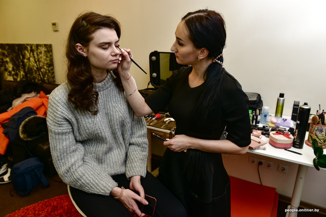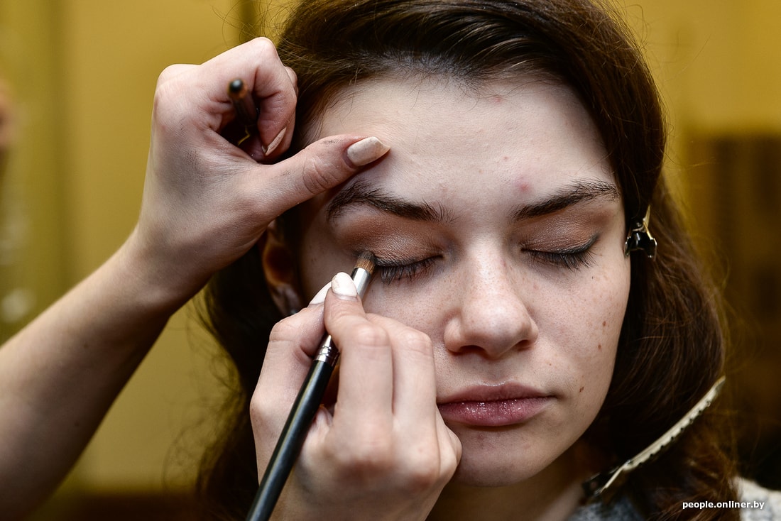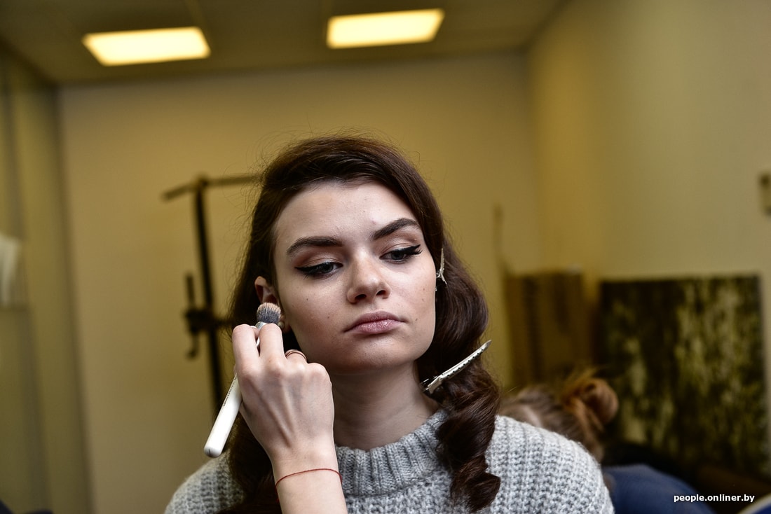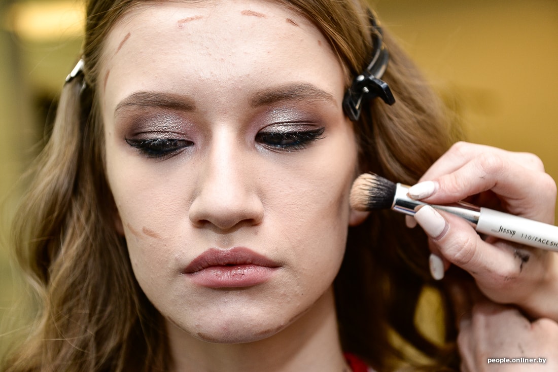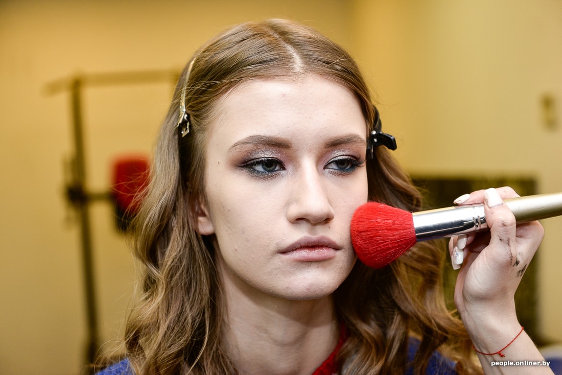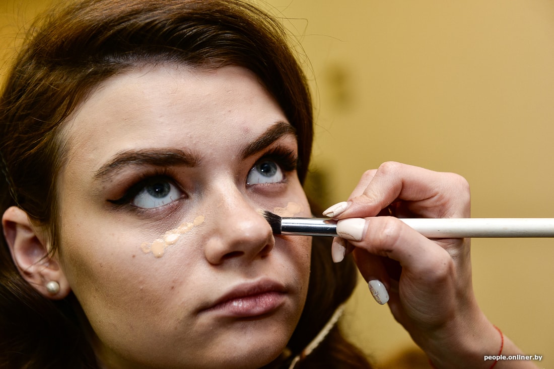 — Увлажните кожу, нанесите базу под макияж, — начинает рассказывать и показывать Светлана. — Наносите тон легкими движениями специальной широкой кистью, двигаясь от центра лица и уделяя особое внимание границам возле волос и складкам носа.