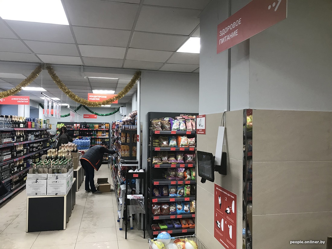 Как сообщили Onliner в компании «Евроторг», большинство из открывшихся магазинов перепрофилированы из «Еврооптов» — небольшие торговые залы площадью около 100 квадратных метров с ограниченным ассортиментом, в котором нет места скоропортящимся товарам: здесь просто нет холодильников.