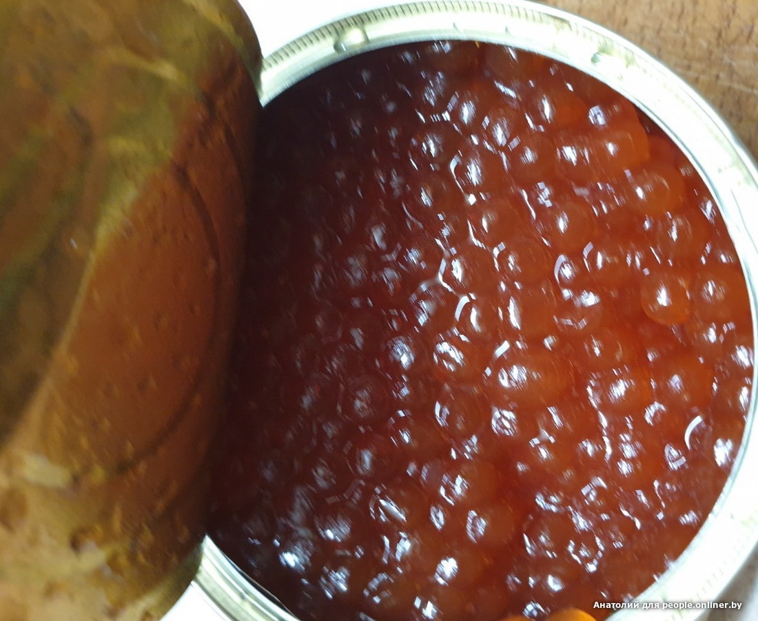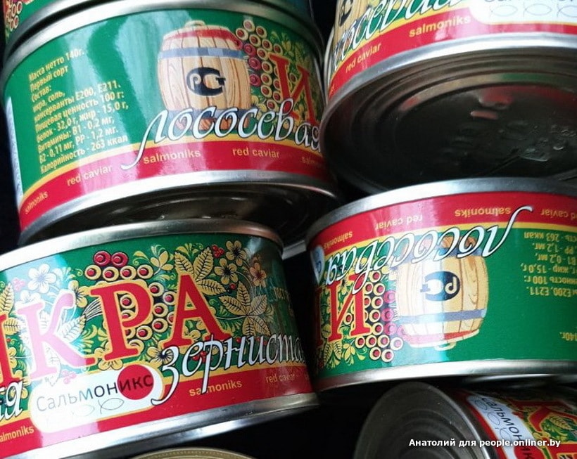 Не в первый уже раз перед новогодними и иными праздниками в разных точках бывшего СССР возникает некая потребительская возня. Люди откуда-то охапками принимаются тащить страшно дешевые жестянки с «красной икрой» (так написано на банках). На этот раз дефицит выбросили в Калинковичах — по 5 рублей 140-граммовая банка. Народ принялся хватать, схватил и наш читатель Анатолий. А потом опомнился: пахнет разводом.