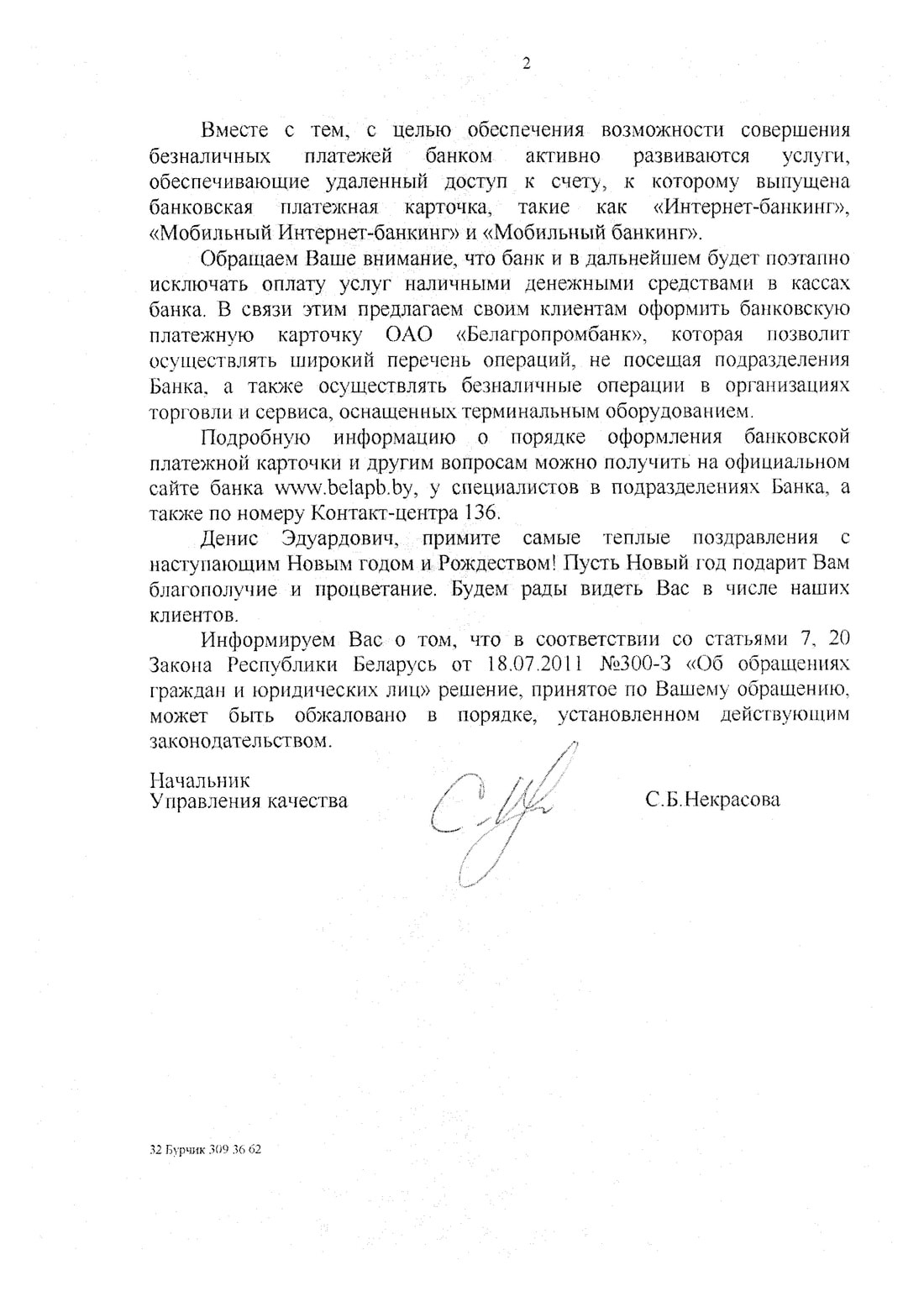 Денис написал обращение в банк, и тот ответил. Минчанина поздравили с Новым годом и предложили завести карточку «Белагропромбанка».