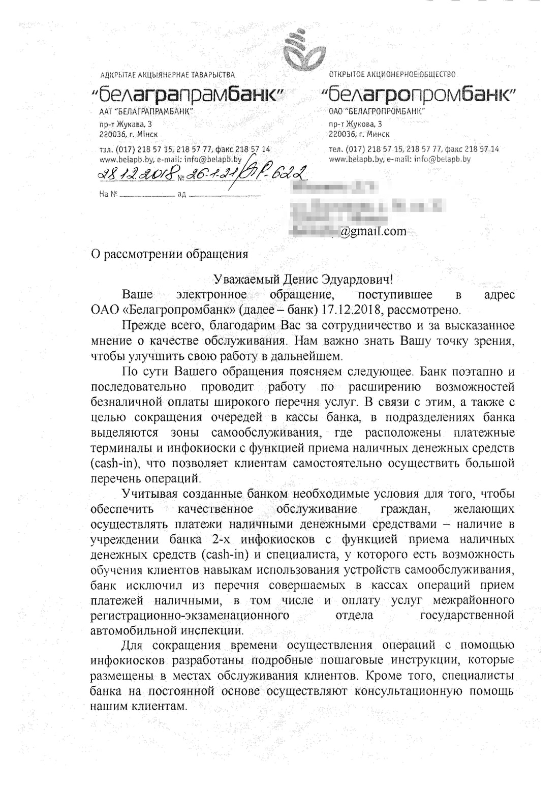 Доля безналичных платежей продолжает расти. По итогам прошлого года она перешагнула долю в 40%. Любители наличных денег от этого не сильно страдают, но иногда приходится. Денис в декабре снимал с учета автомобиль на авторынке в Малиновке. Пошел в «Белагропромбанк», но не смог там воспользоваться своими деньгами в кошельке.