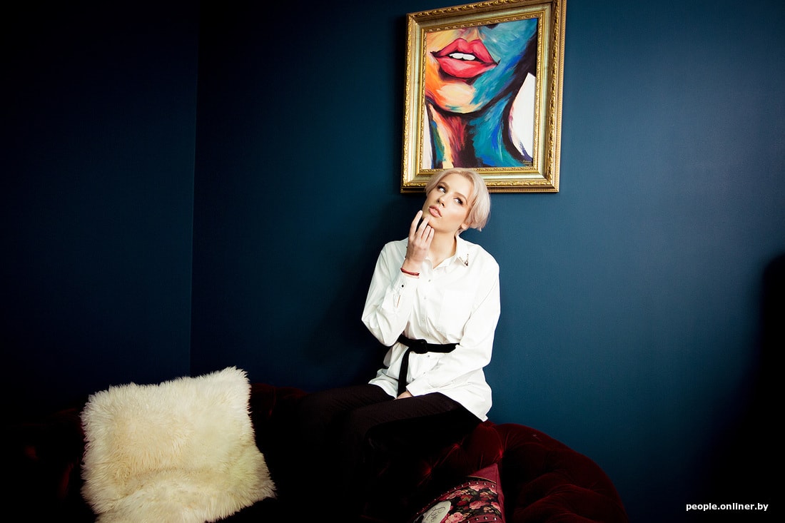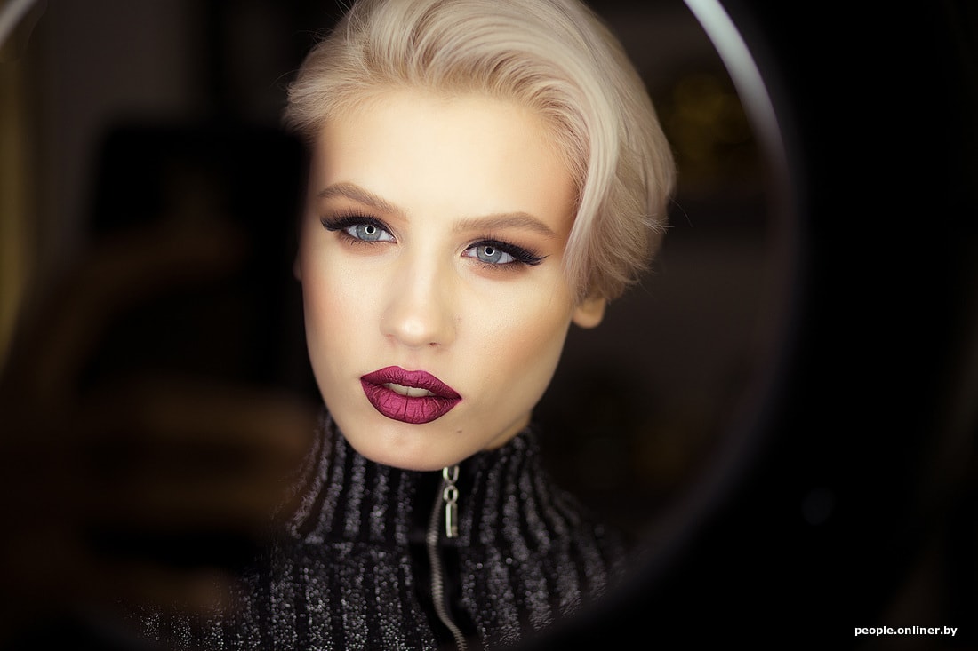Яркой помадой можно прикрыться. Для девушек она как маска, которая придает смелости, красоты, фотогеничности. Елизавете третий макияж пришелся к лицу больше всего, что и отразилось на методах позирования.