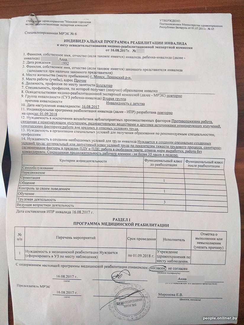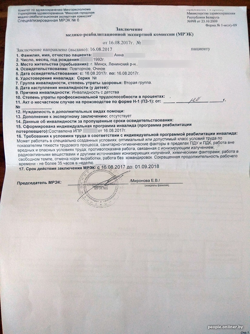 — Я дополнительно прошла медкомиссию, и врачи подтвердили: могу работать оператором ЭВМ, — объясняет девушка. — Здесь приступ настиг меня уже через 10 дней. Мы сидели в кабинете, и я замерла там на минуту или две. Коллеги заметили, и начальство направило меня на обследование в поликлинику. Они выдали справку о том, что я не годна к работе именно на этом госпредприятии именно по специальности «оператор ЭВМ». Хотя МРЭК написала, что у меня нет противопоказаний по данной работе.