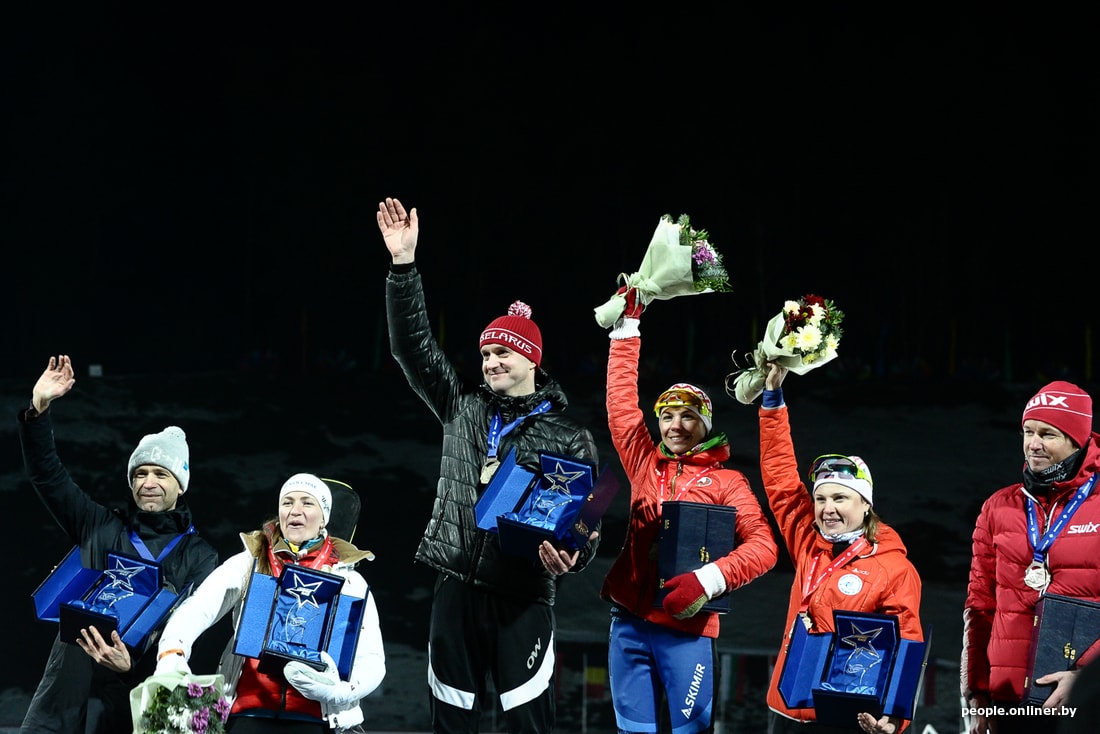 В итоге Надежда Скардино победила в масс-старте. Анна Богалий из России стала второй, Симона Хаусвальд из Германии — третьей. У мужчин лучшим был украинец Андрей Дериземля, Уле-Эйнар Бьорндален стал вторым, третьим — белорус Сергей Новиков. Сейчас будут знакомые уже имена. Надежда Скардино и Сергей Новиков победили в смешанной эстафете. Домрачева и ее великий муж Уле-Эйнар Бьорндален стали вторыми.