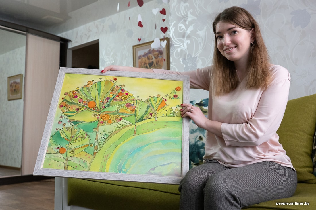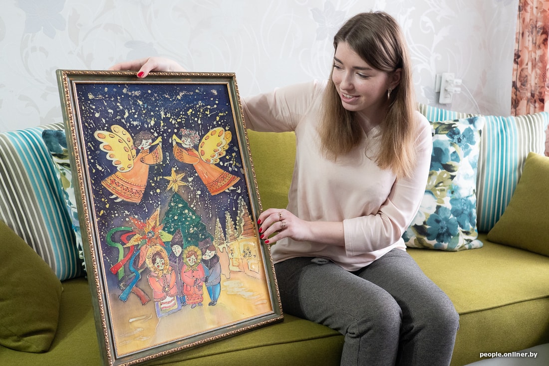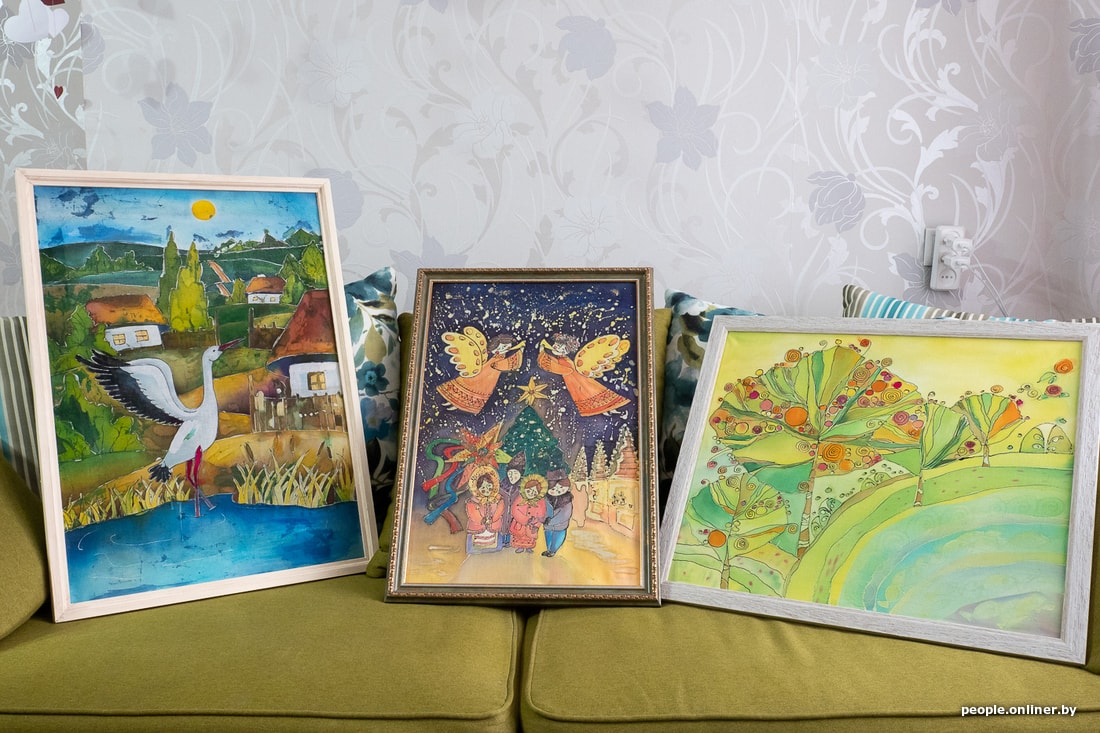 — Настя на свою работу еще и тратится постоянно. Недавно покупали рамки, подрамники, приходится приносить материалы: ткань, нитки, иголки, — разводит руками Андрей.