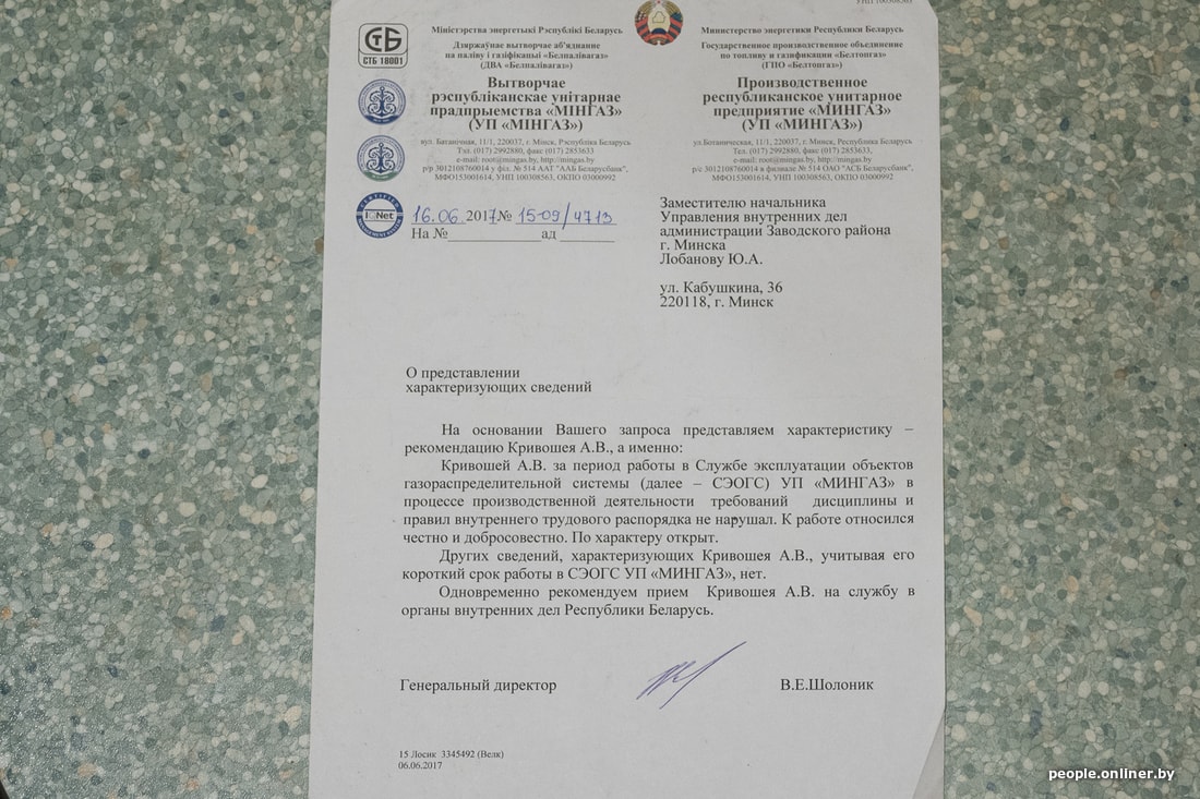 — Из армии он пришел летом 2017 года. Собирался идти служить в милицию, уже даже начал проходить медкомиссию, — объясняет бабушка. — Но у Леши были проблемы со здоровьем, ему пришлось ложиться на операцию. В приемной комиссии в МВД сказали, что после операции нужна реабилитация в течение семи месяцев. Поэтому Леше пришлось вернуться на свою прежнюю работу в «Мингаз». Мечты о милиции он не оставлял.