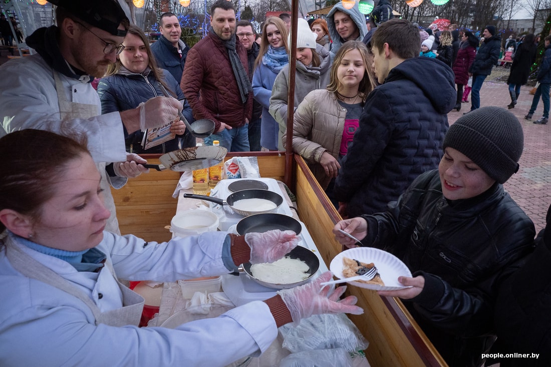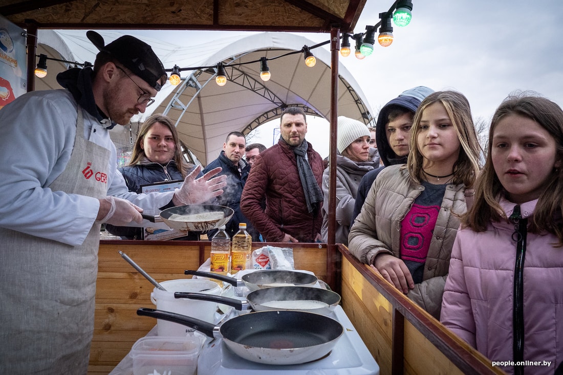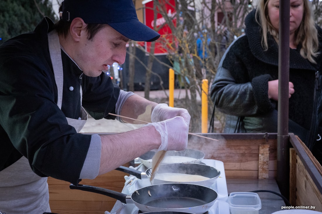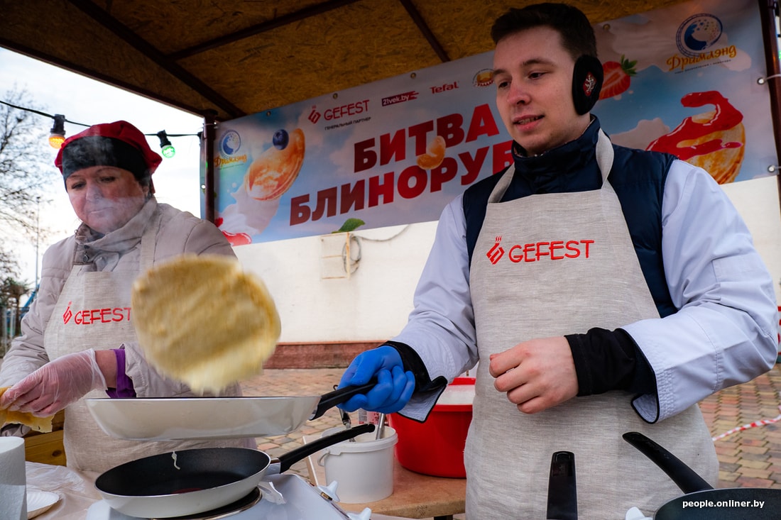 Зрители и (при желании) дегустаторы оценивали скорость выпекания блинов, их вкус и внешний вид. Никаких «первых блинов комом» у профессионалов-«блинорубов» быть не должно. Потому что это еще и конкурс, за победу в котором полагались ценные призы. Ну а пока специалисты соревновались, любители поесть блинчиков удовлетворяли аппетит.