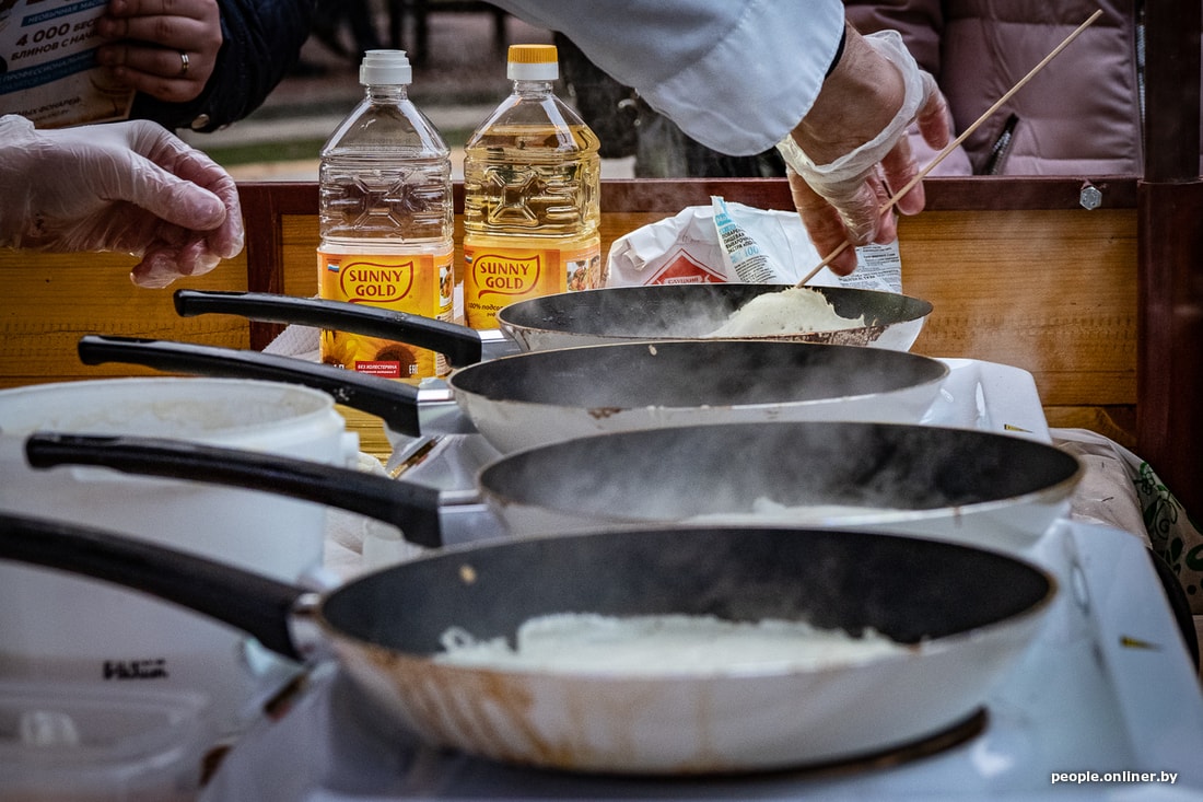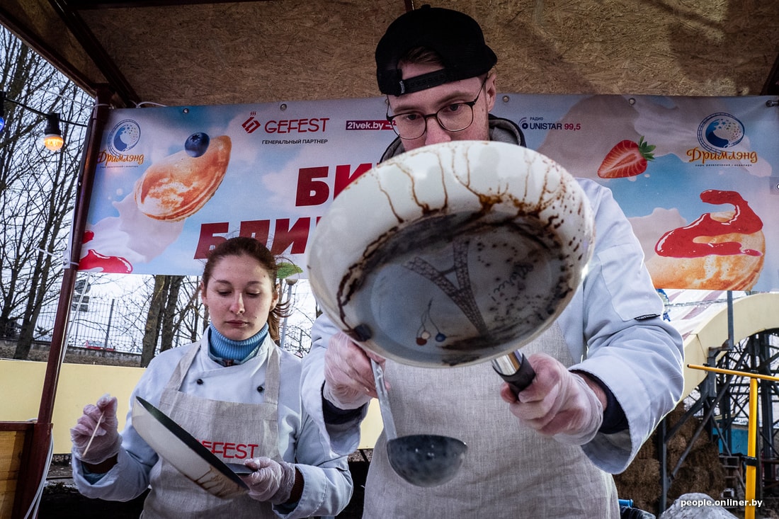 Для того чтобы отпраздновать масленицу, организаторы пригласили восемь команд профессиональных поваров, которые на глазах у зрителей пекли блины. По предварительным подсчетам должно было получиться что-то порядка 4000 блинов с начинками.