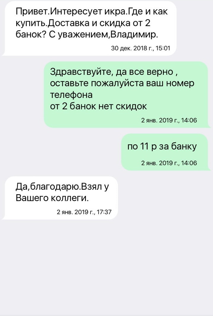 — Занимаемся икрой уже месяца три, особо жалоб не было... Если откровенно, я не специалист в икре, у меня нет лаборатории. Люди берут, им нравится, много положительных отзывов. У меня семья кушает на праздник, вкусная икра... Но вкусы разные, да, были недовольные — где-то в соотношении пять на сто клиентов...